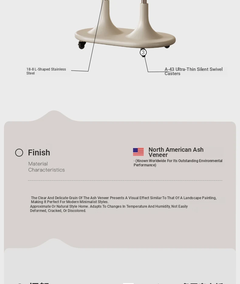 [2025 Original Release] [North American Imported Natural White Ash Veneer] Cart Side Table