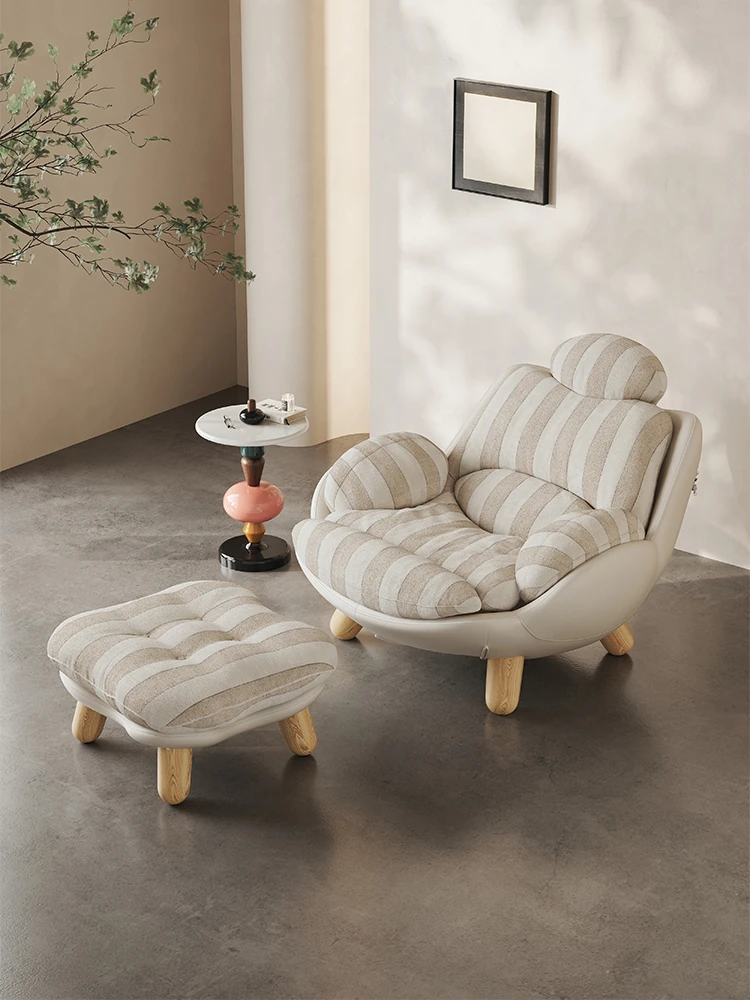 Cream Cedar [France Color Embroidered Jacquard Cotton and Linen] Single Chair + Footrest