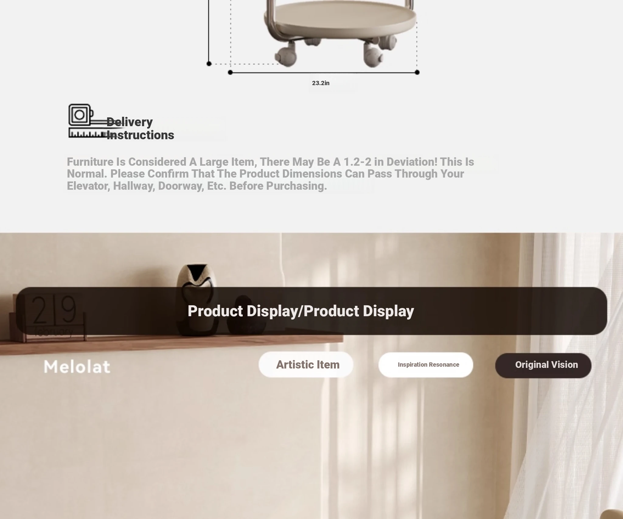 Melolat Original Italian Rolling Cart - Designer Luxury Side Table with Wheels for Living Room, Perfect for Modern Spaces