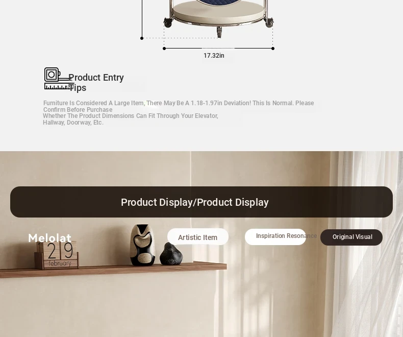 Melolat Original Italian-Inspired Mobile Carts with Wheels - Designer Luxury Side Tables for Your Living Room