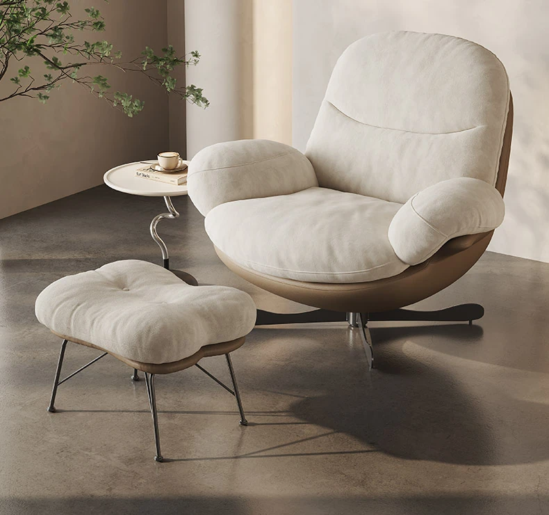Moon White Warm Coffee [2025 Original Release] [France Import Frosted Fabric] Swivel Chair + Footrest