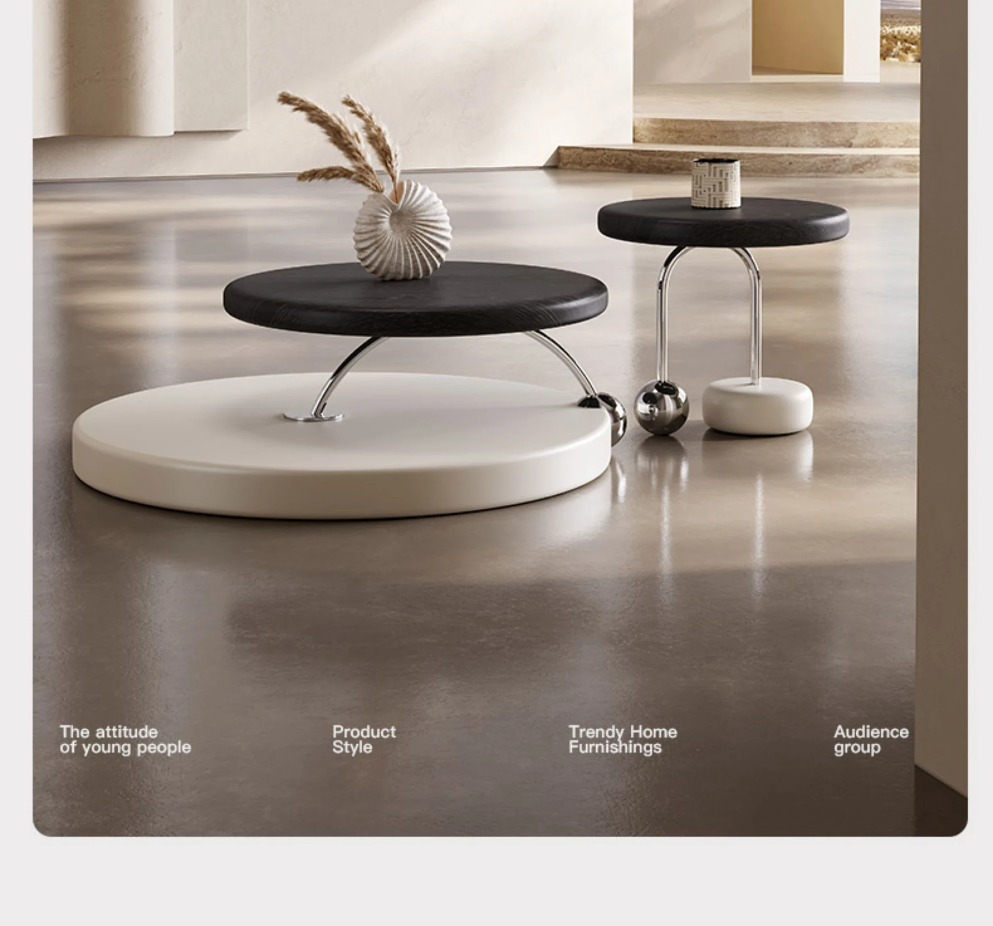 Melolat Original Premiere: Italian Minimalist Coffee Table Set - Chic Cream Aesthetic for Stylish Small Living Rooms