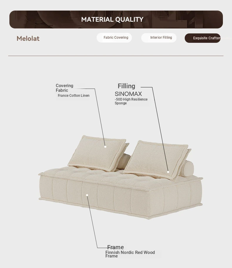 Melolat Piemonte Tofu Block Fabric Sofa - Nordic Style Tatami Japanese Toast Modular Combination for Stylish Living Spaces