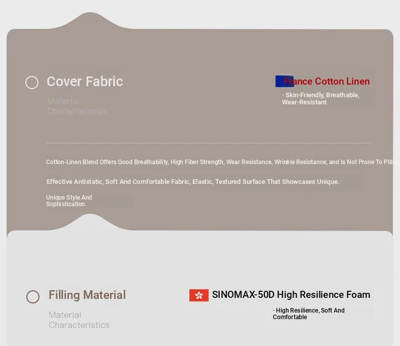 【French Imported Natural Cotton Linen + Imported Goose down Cushion + 50D High-Resilience Sponge / Thickened and Widened Red Pine Solid Wood Frame】