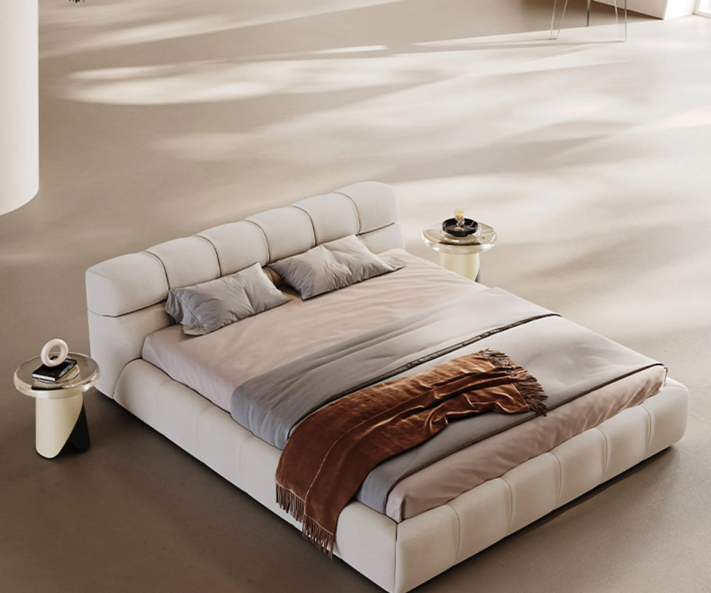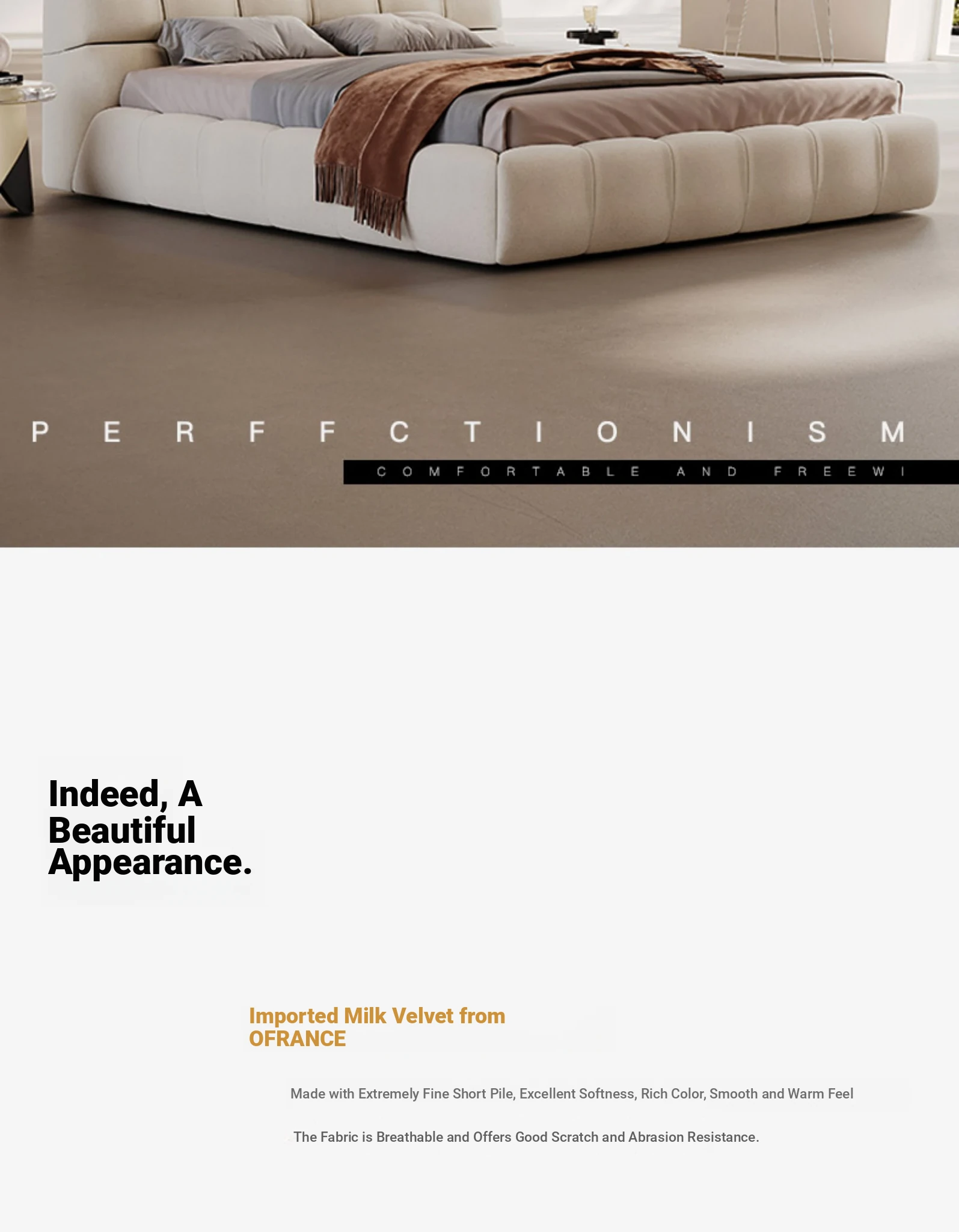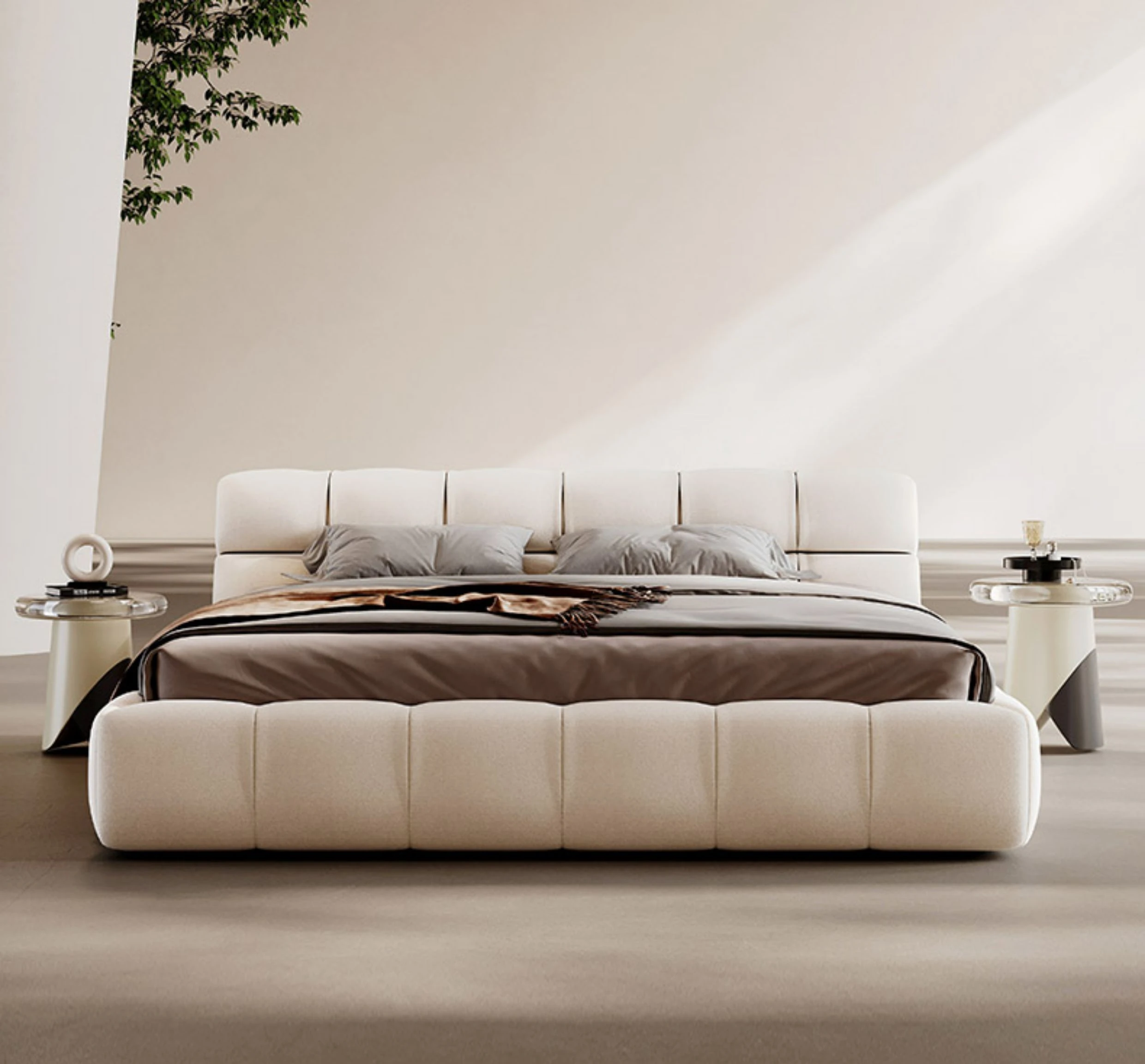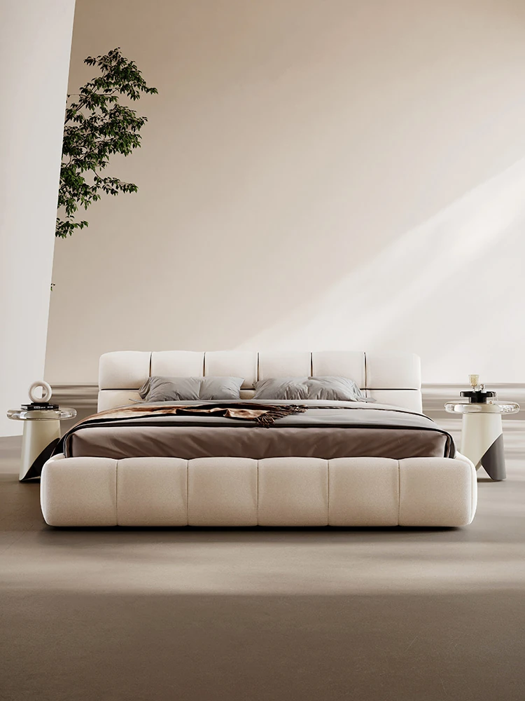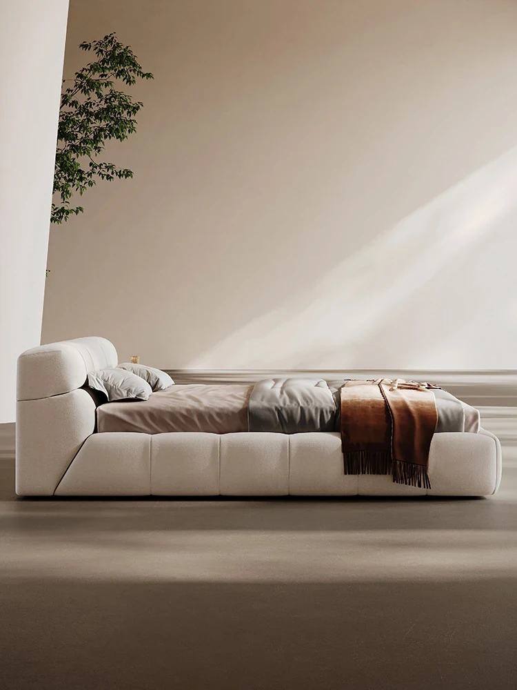 Melolat Puff Bed - Italian Minimalist Luxury Cream Velvet Modern Wabi-Sabi Fabric Wedding Bed for Your Master Bedroom