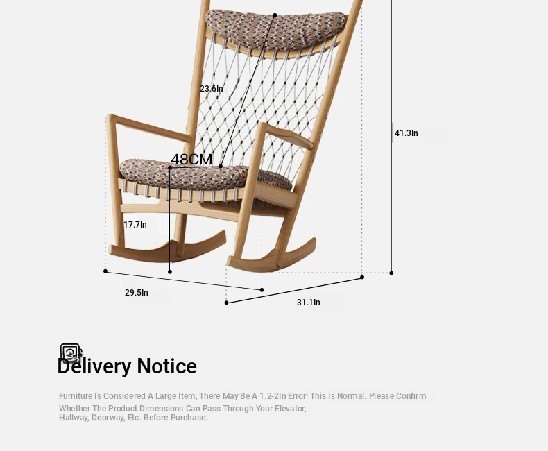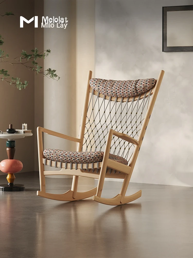 Melolat Solid Wood Rocking Chair – Scandinavian Style Single Sofa for Home Living Room – Perfect for Napping and Relaxation