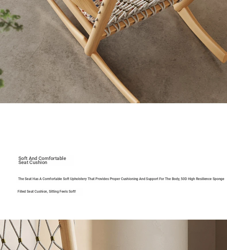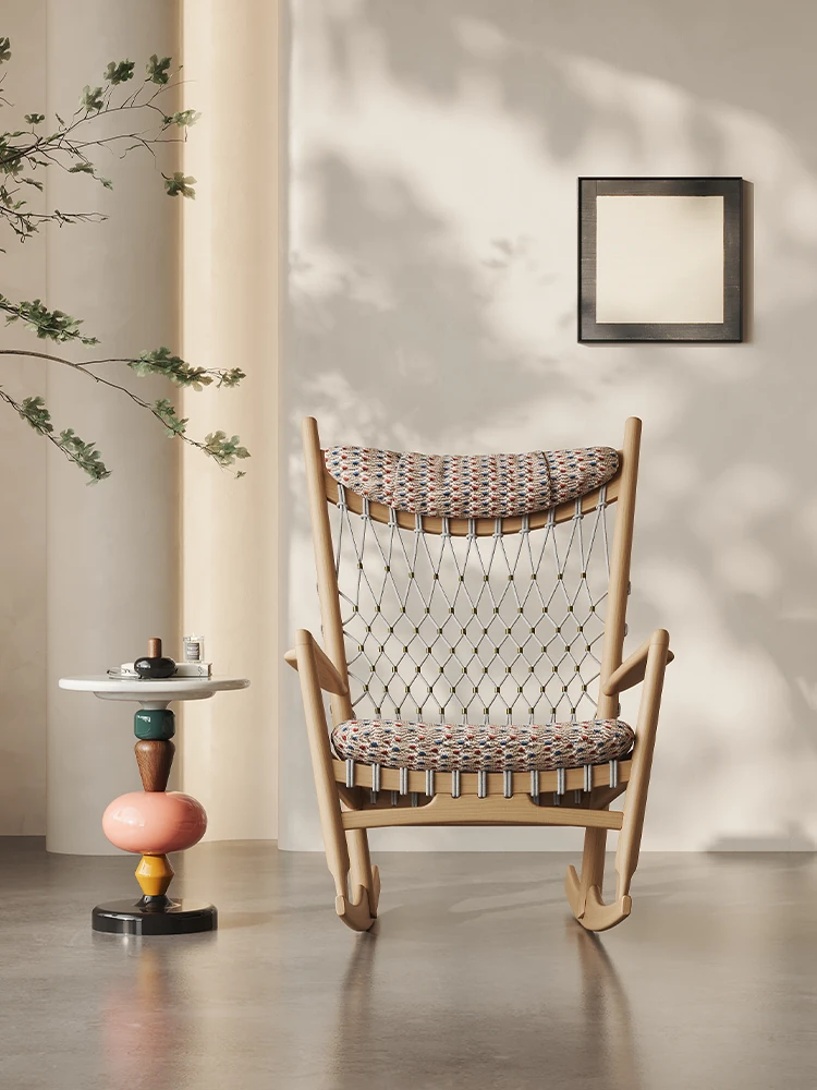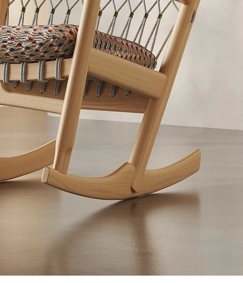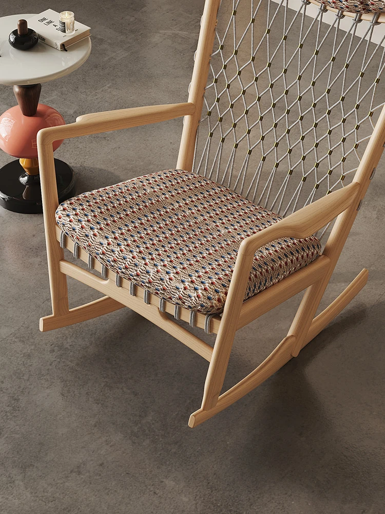 Red and Blue Woven Cotton [France Imported Knitted Cotton and Linen + North American Imported Native Ash Wood] Art Rocking Chair