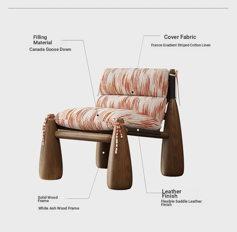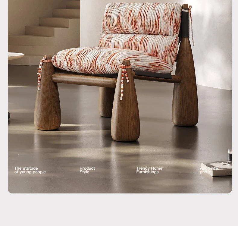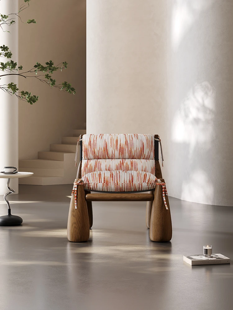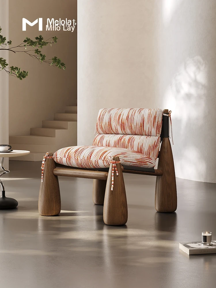 Melolat Vintage American Style Baseball Chair - Designer Solid Wood and Italian Fabric Art Leisure Chair for Home Living Room
