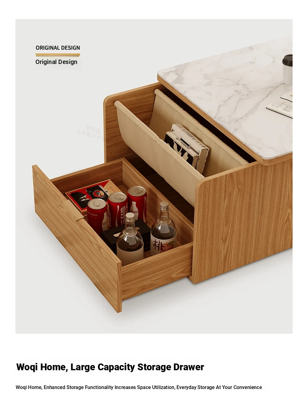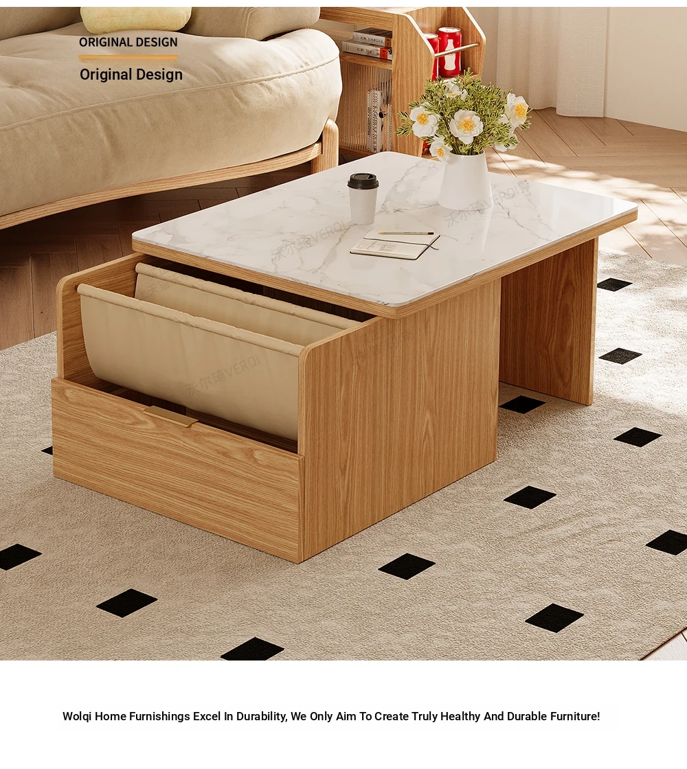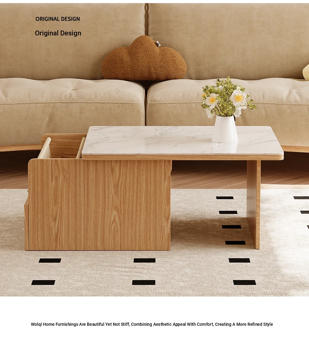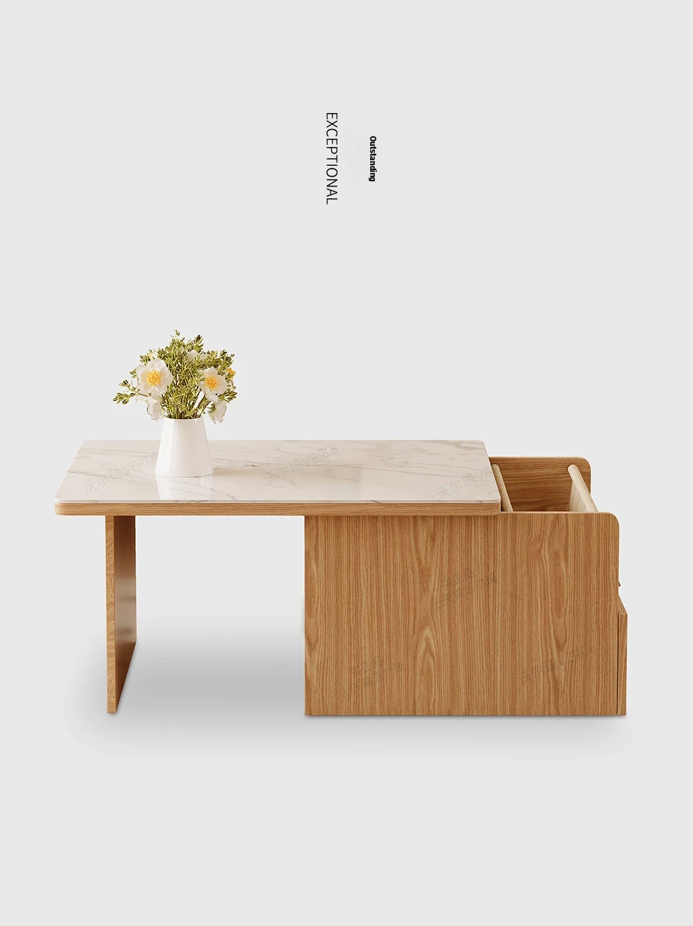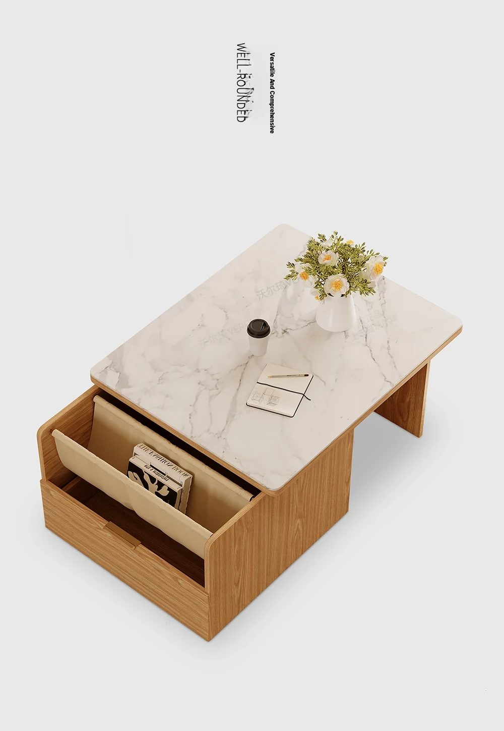Modern Japanese Solid Wood Coffee Table - Minimalist Design for Small Living Rooms, Featuring Drawer Storage and Rock Plate Top - New Arrival 2023