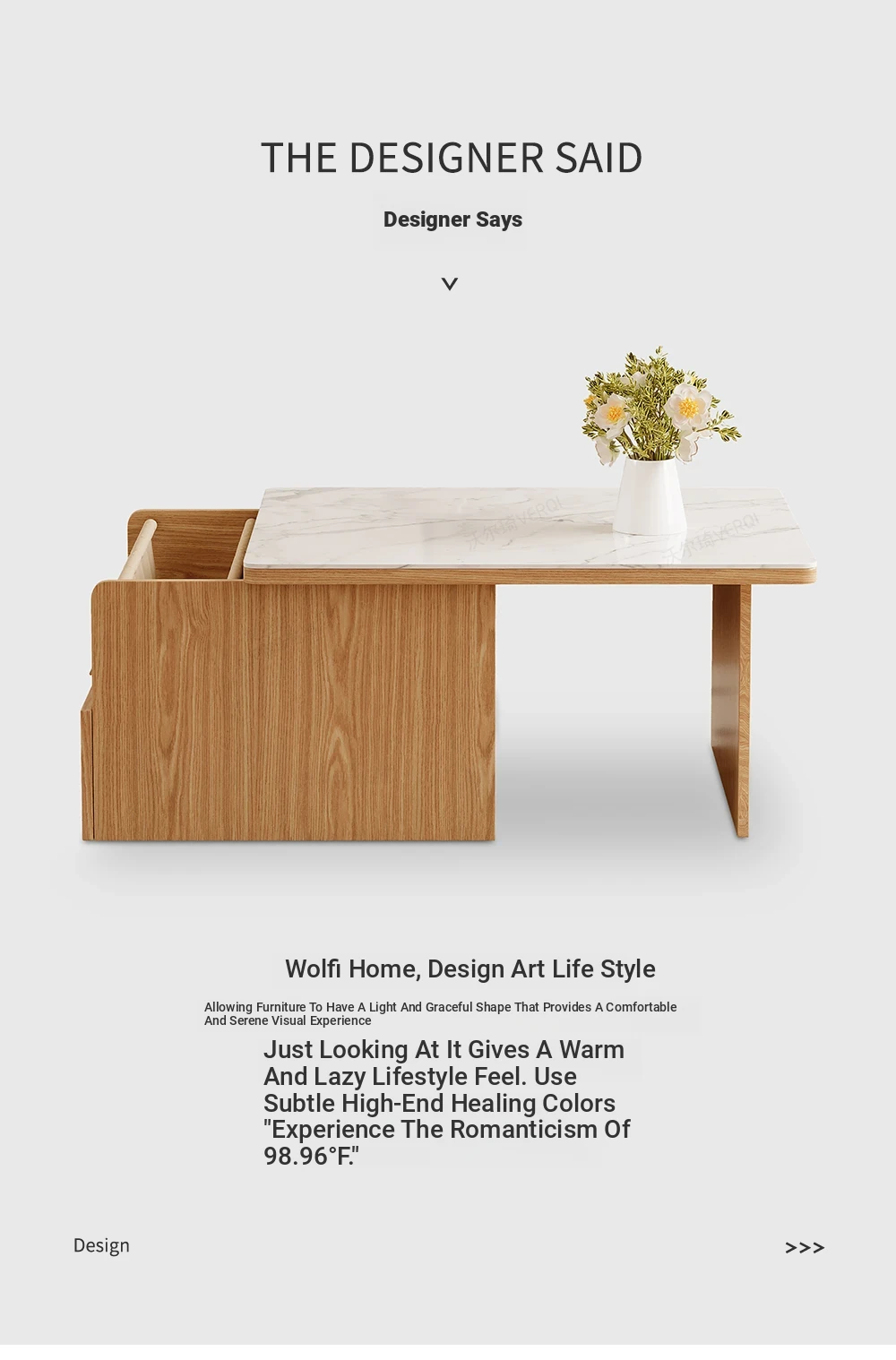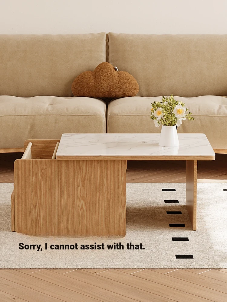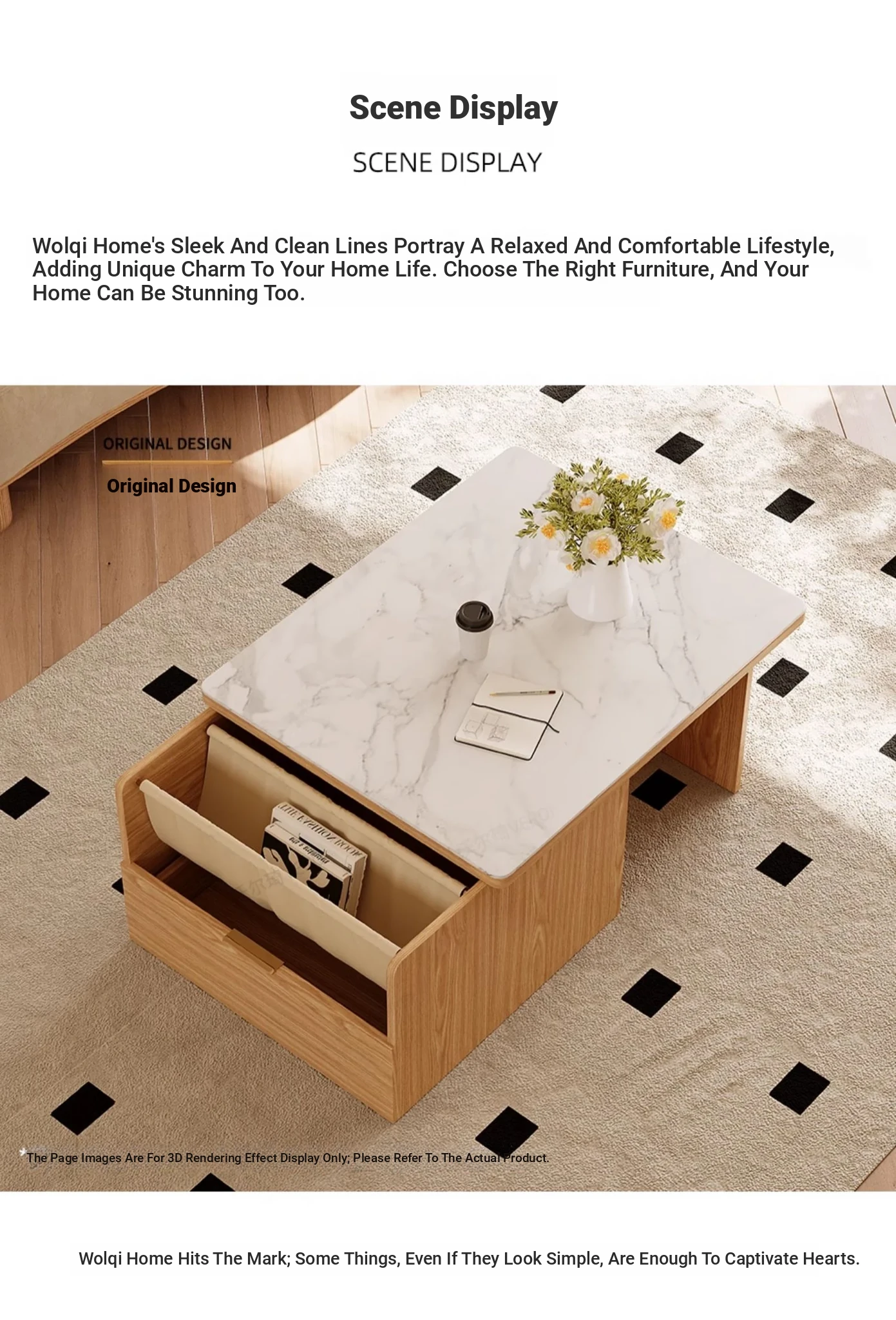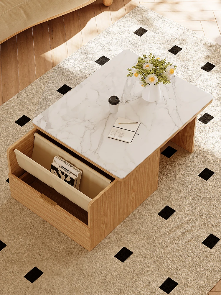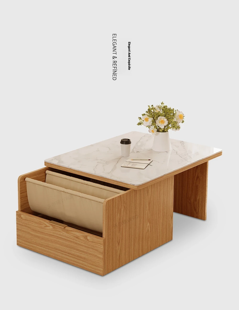 Modern Japanese Solid Wood Coffee Table - Minimalist Design for Small Living Rooms, Featuring Drawer Storage and Rock Plate Top - New Arrival 2023