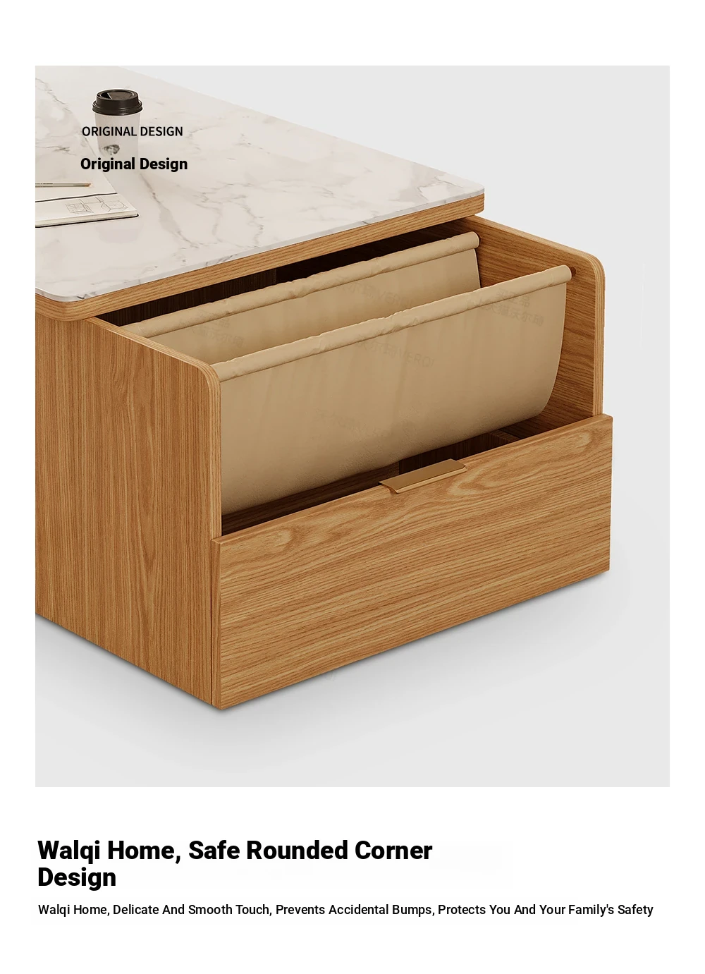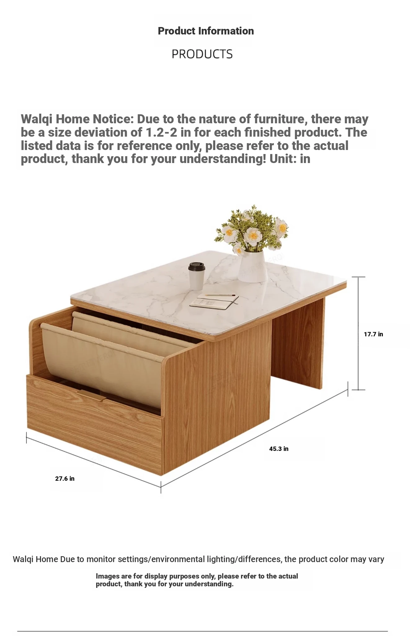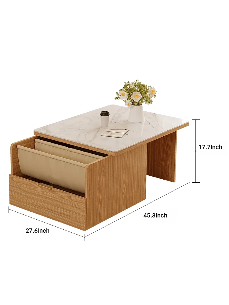 Storage Coffee Table [Solid Wood Frame + Snow Mountain Stone Slate]