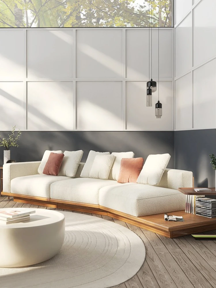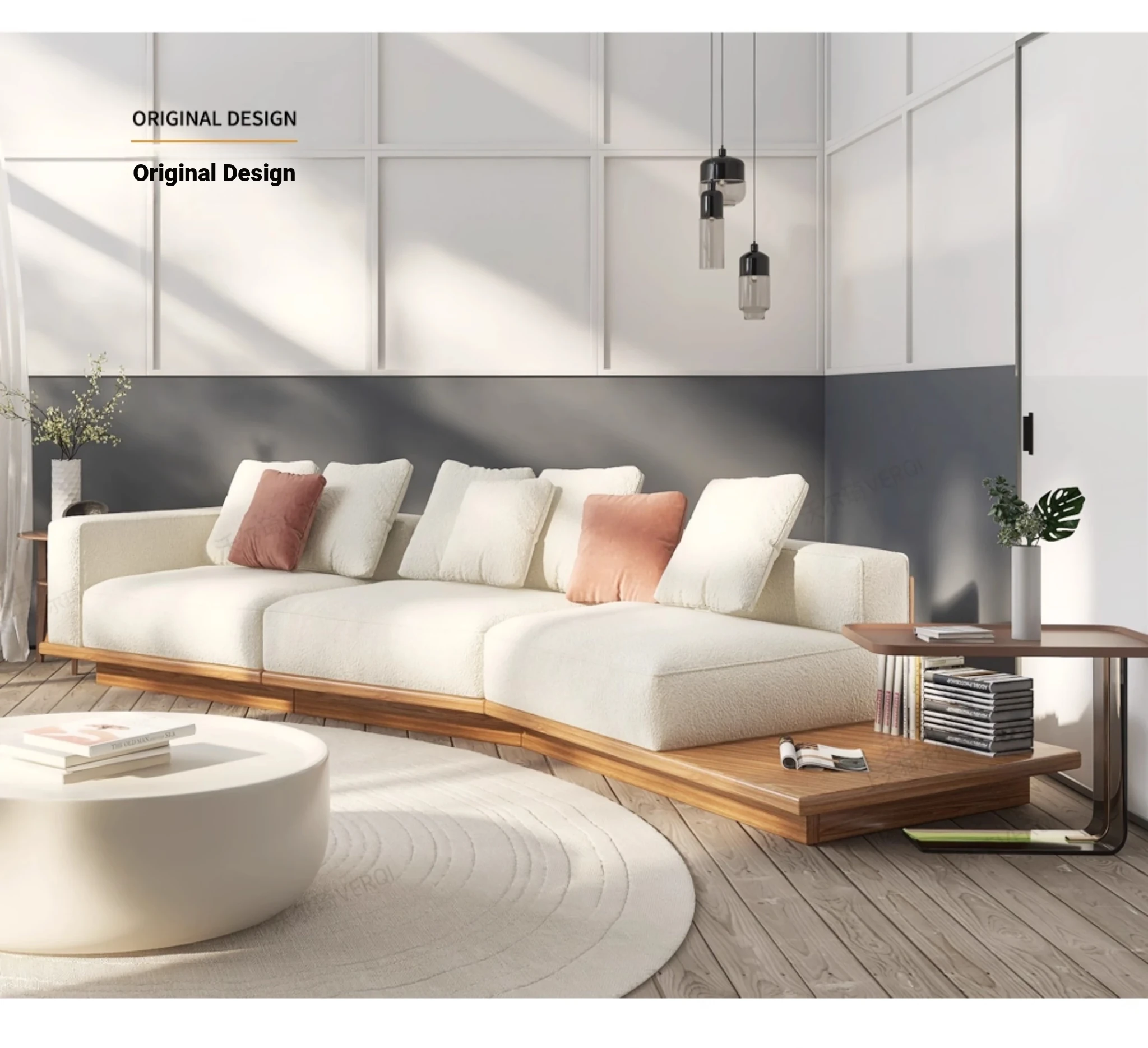 Modern Minimalist Fabric Sofa with Solid Wood Frame - Perfect for Large and Small Spaces, Creamy Japanese Horizon Design, Extra Wide Tufted Couch for Ultimate Comfort