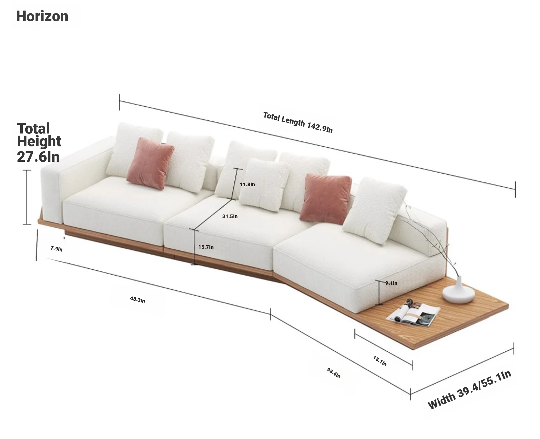 Three-Seater Sofa, 125.98 ineters (Including Side Cabinet)