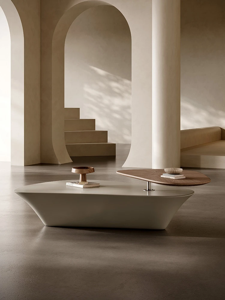 Modern Minimalist Italian-Style Asymmetrical Rotating Coffee Table - Designer's Creative Tea Table for Living Room and Villa, Perfect for Wabi-Sabi Aesthetic