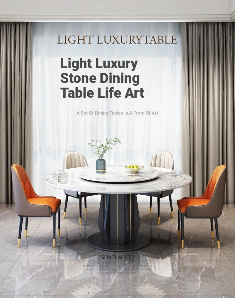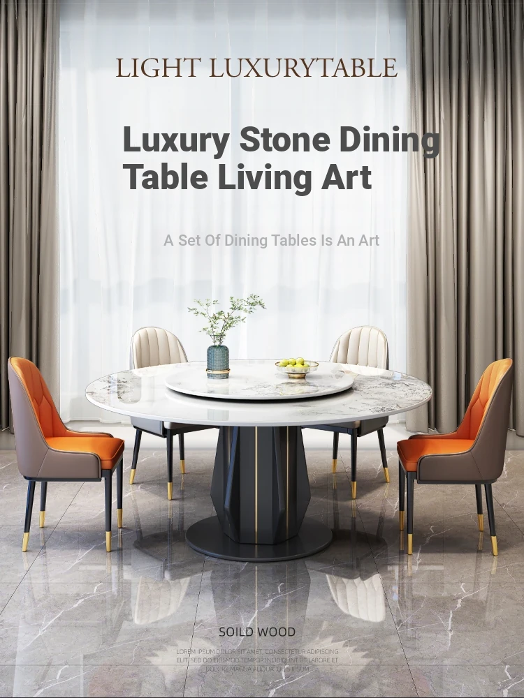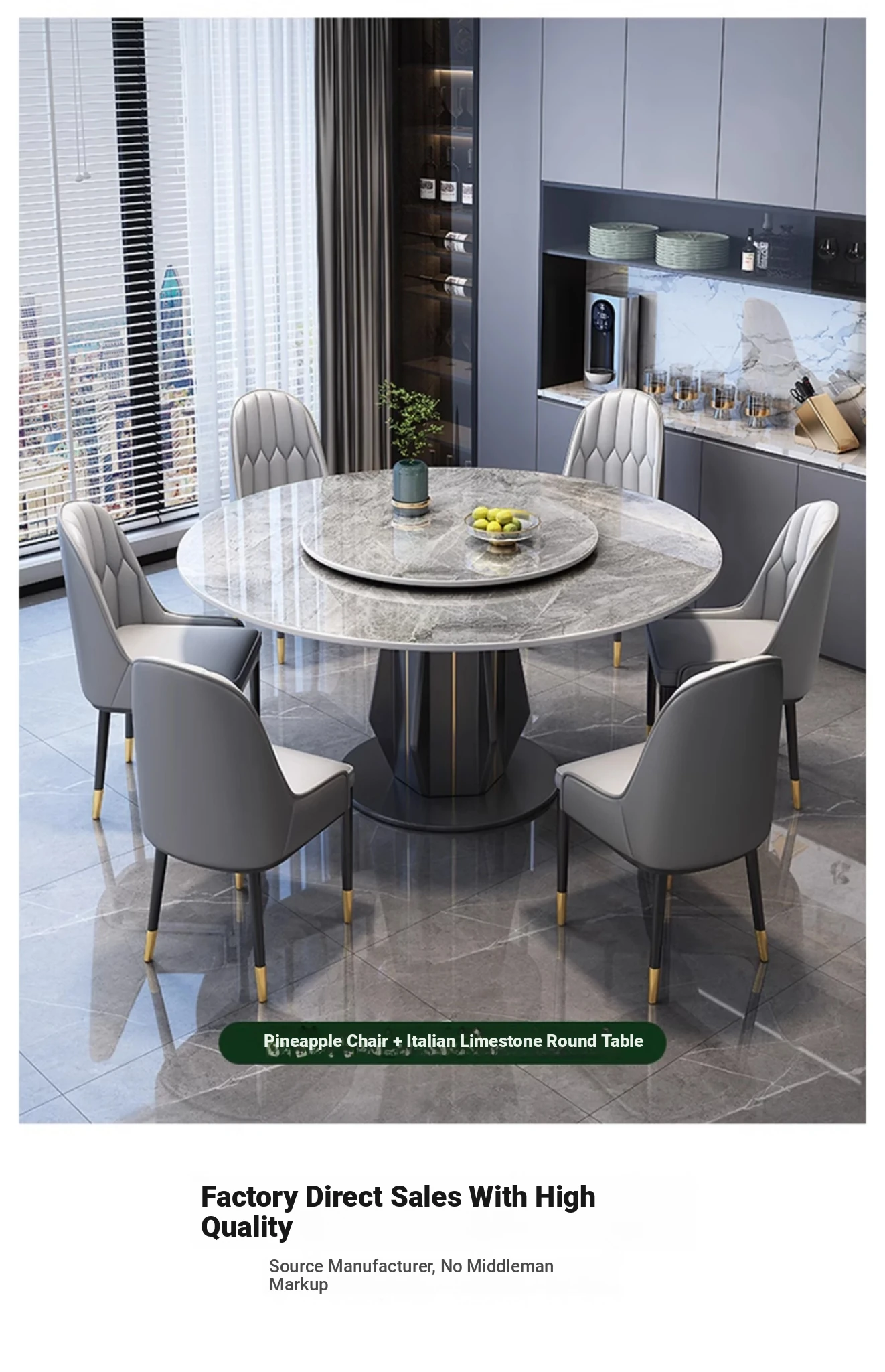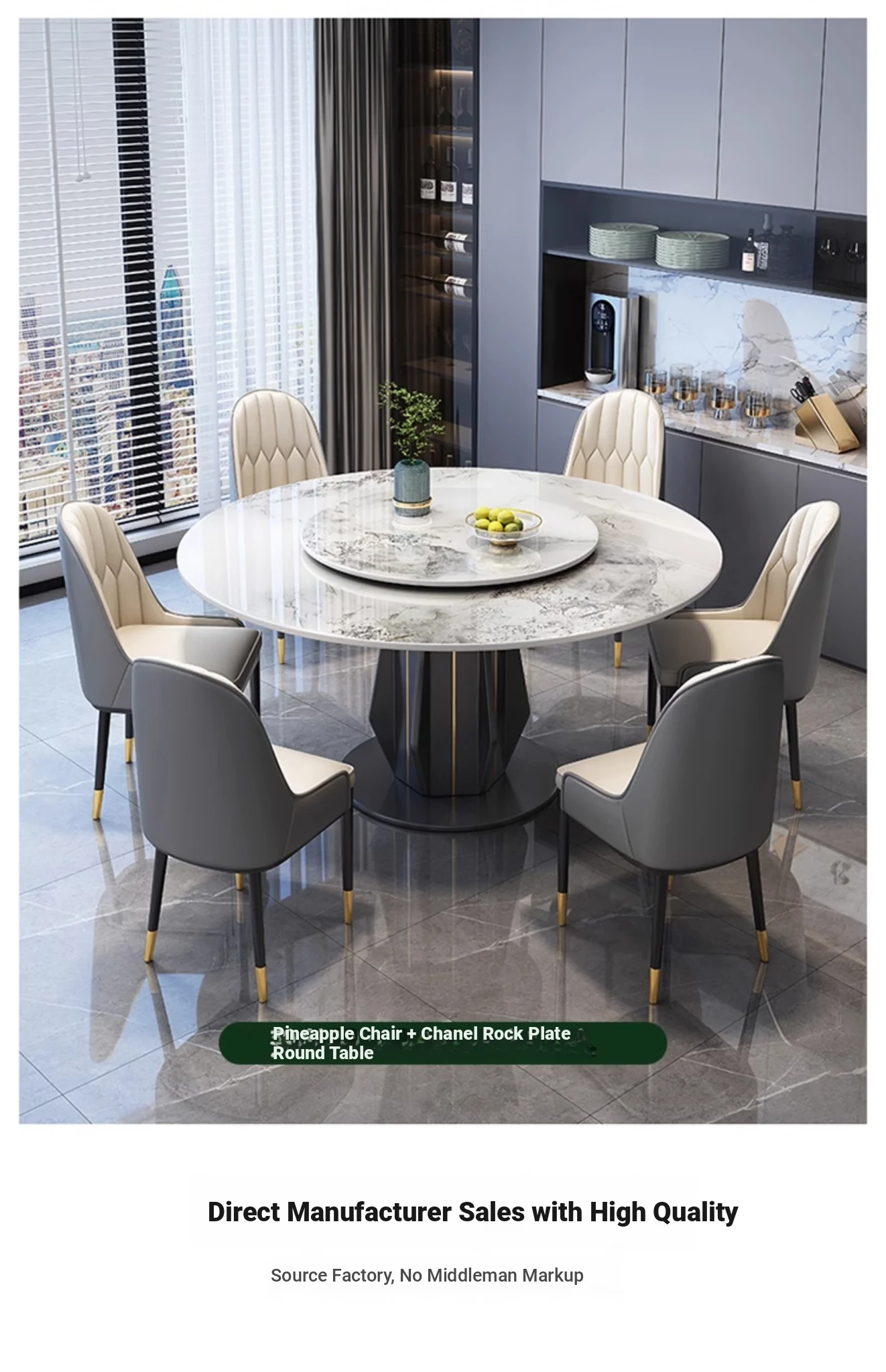 Rock plate round dining table (delivery turntable) + Cat Claw leather dining chair * 10
