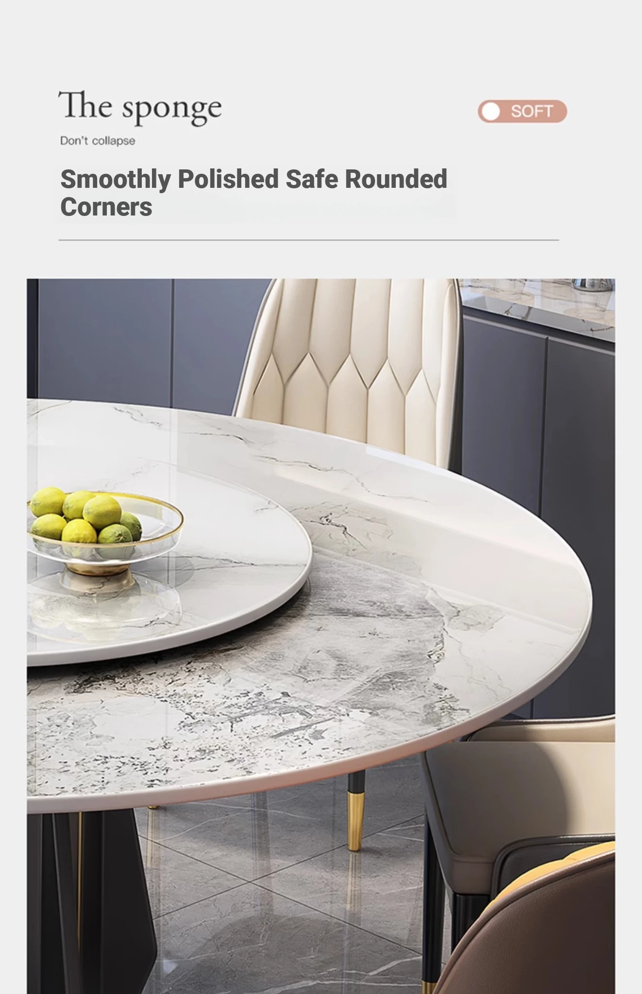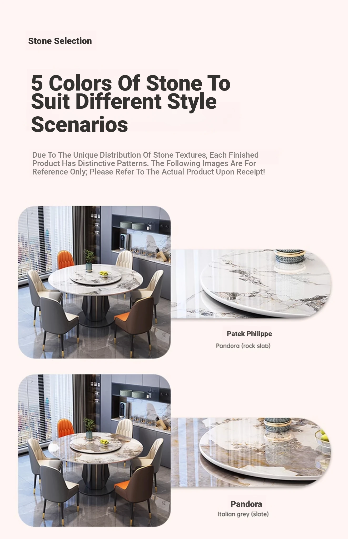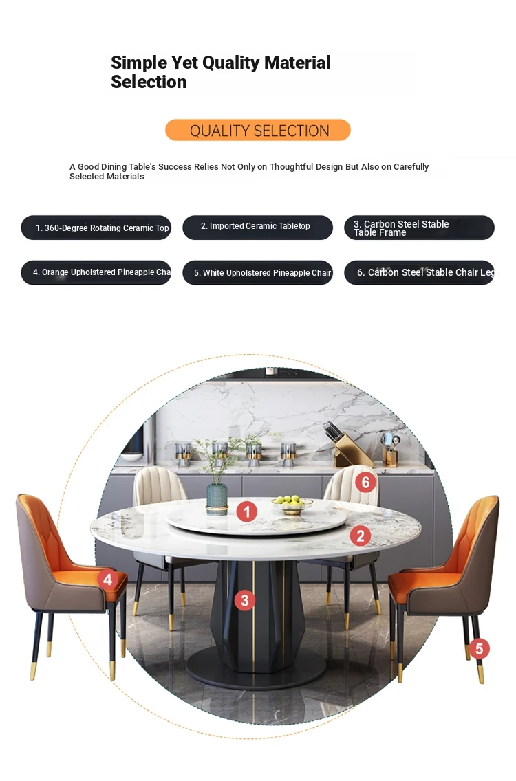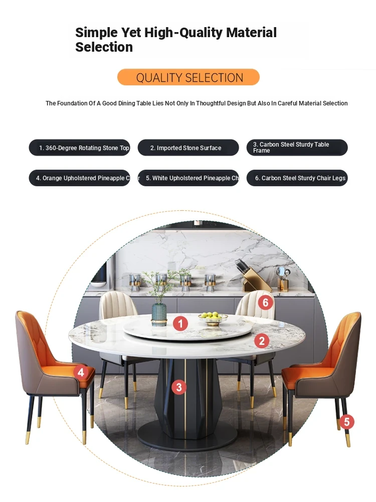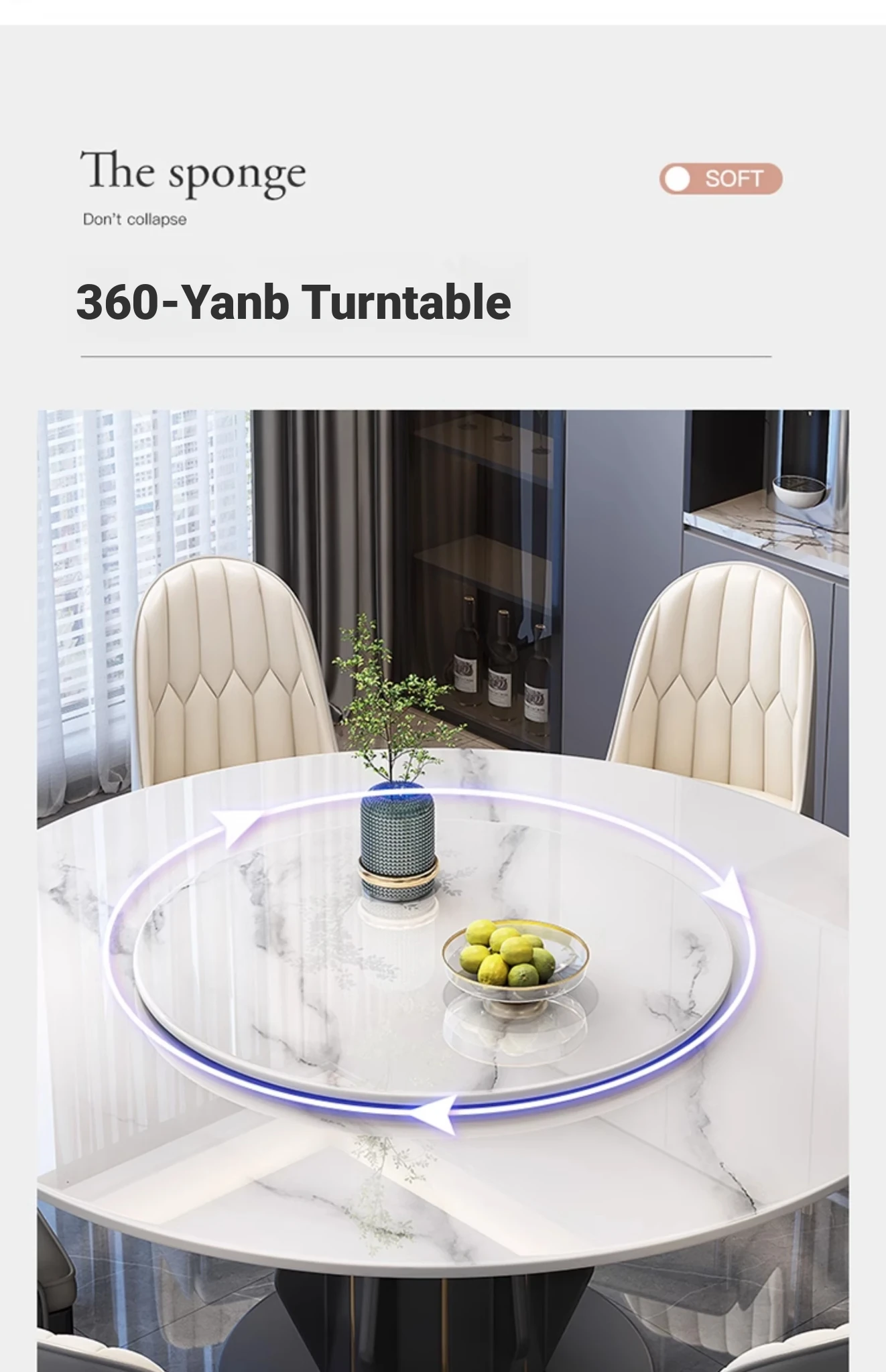 Rock plate round dining table (turntable) + Cat Claw leather dining chair * 6