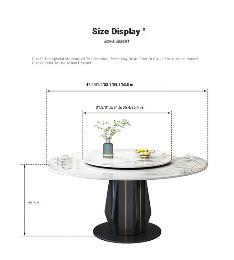 Super crystal stone round dining table (delivery turntable) + Cat Claw leather dining chair * 6