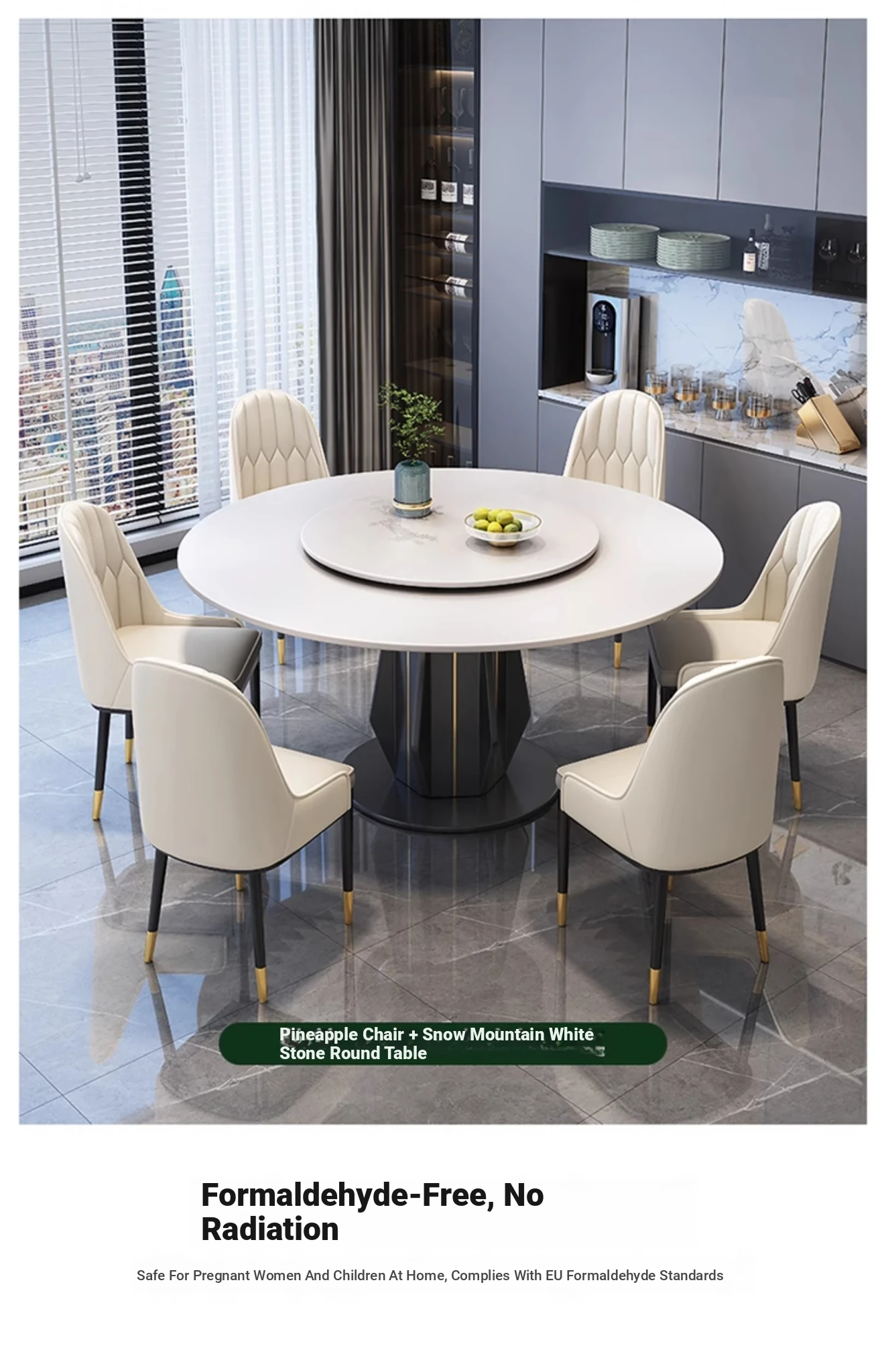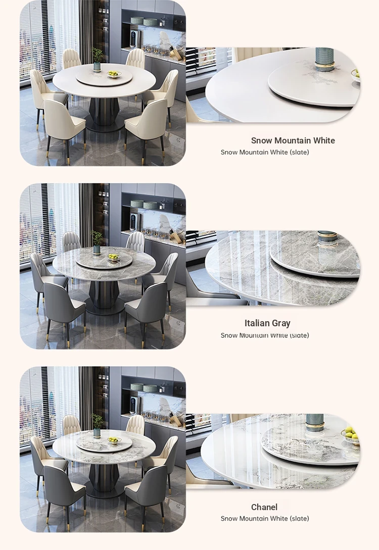 Rock plate round dining table (delivery turntable) + Cat Claw leather dining chair * 8
