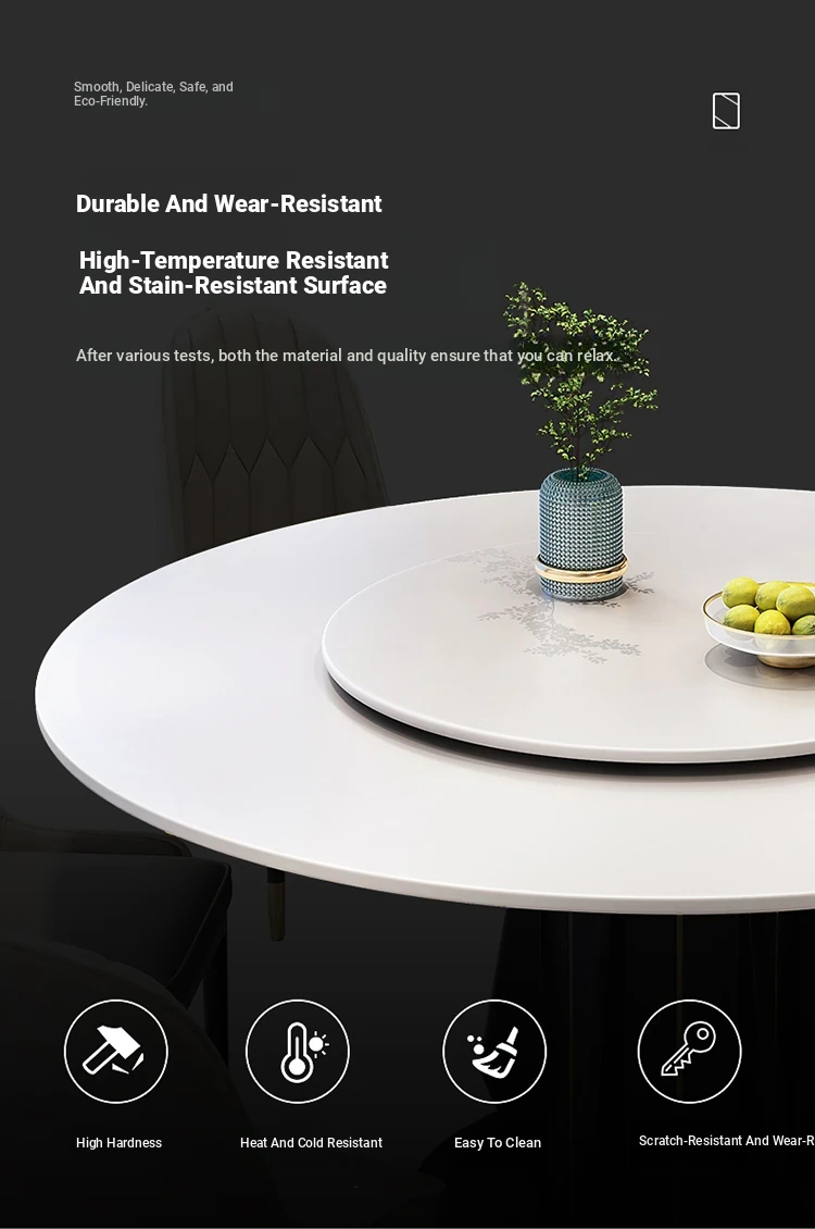 Rock plate round dining table (turntable) + Cat Claw leather dining chair * 4