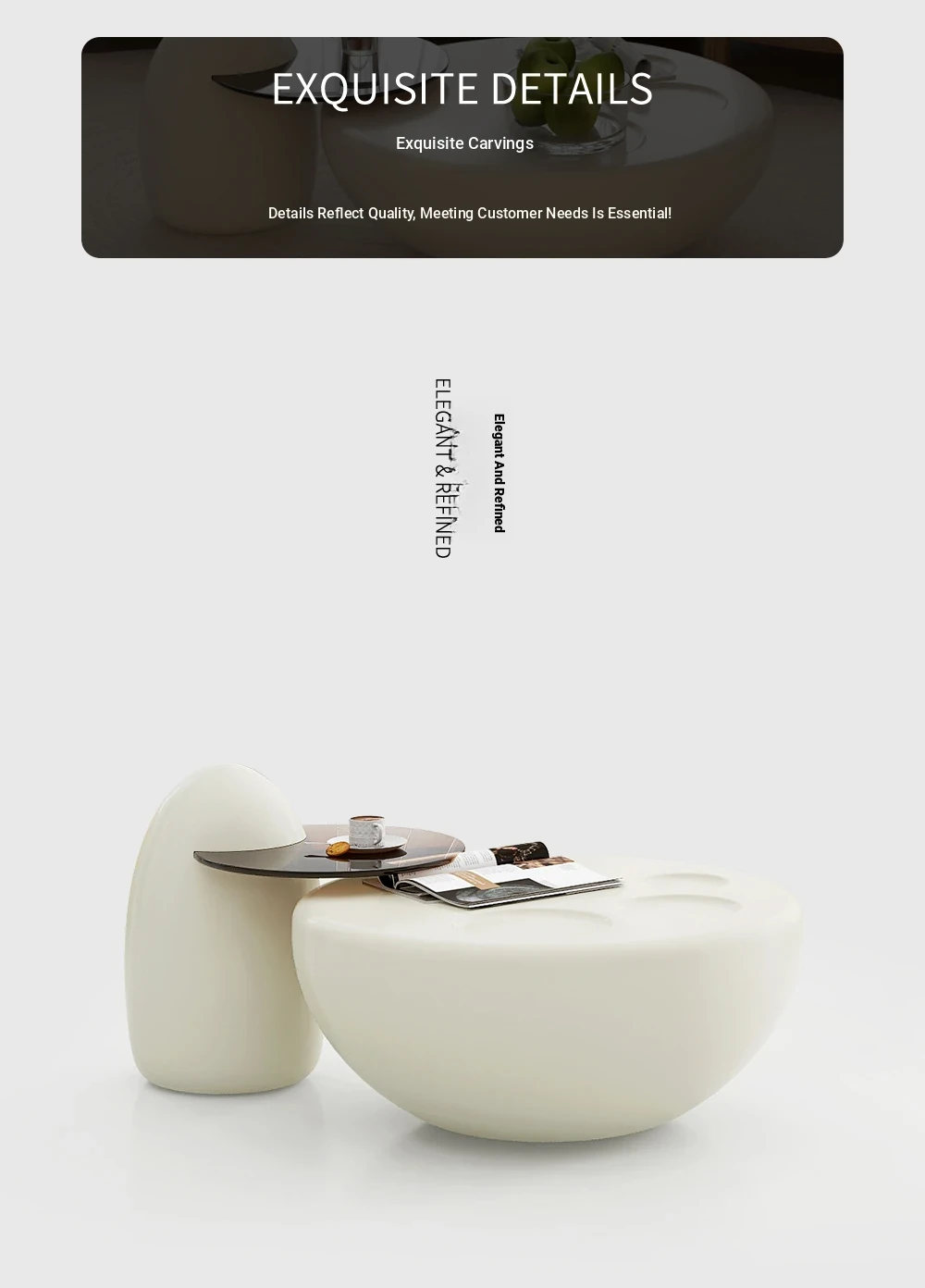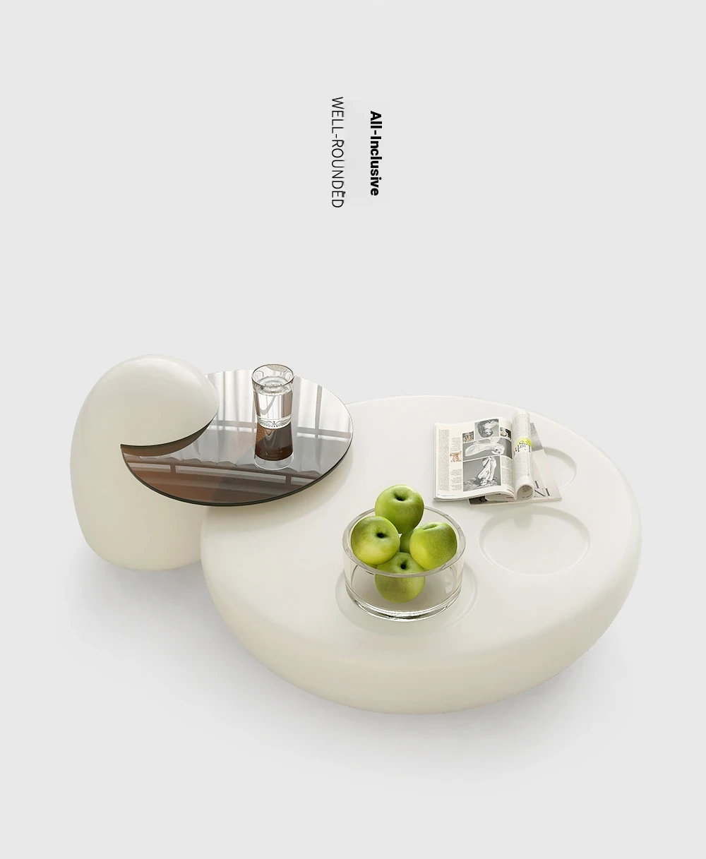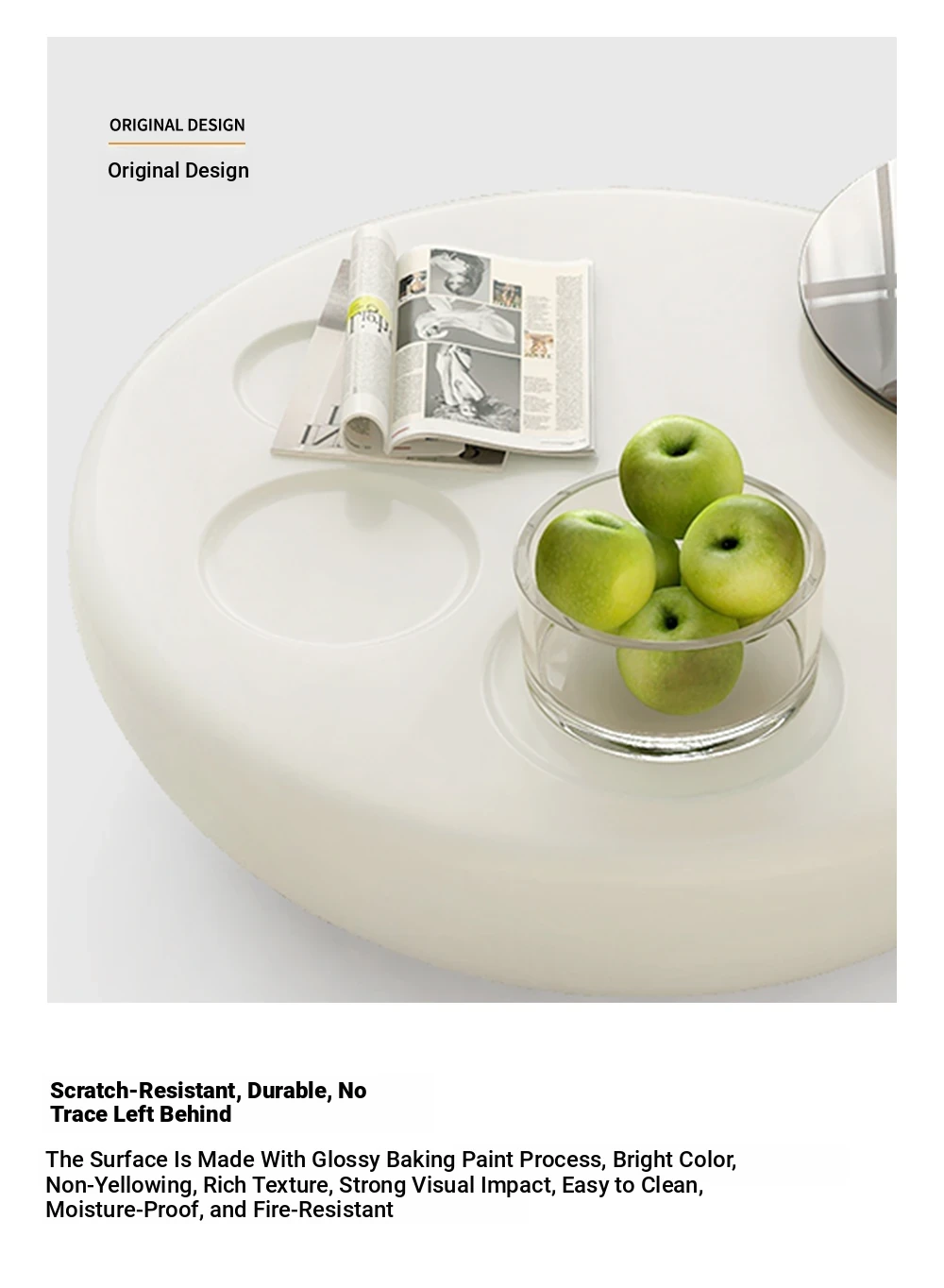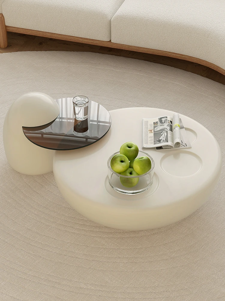 Modern Minimalist Round Coffee Table with Cream Cat Paw Design - Stylish and Creative Living Room Furniture for Small Spaces