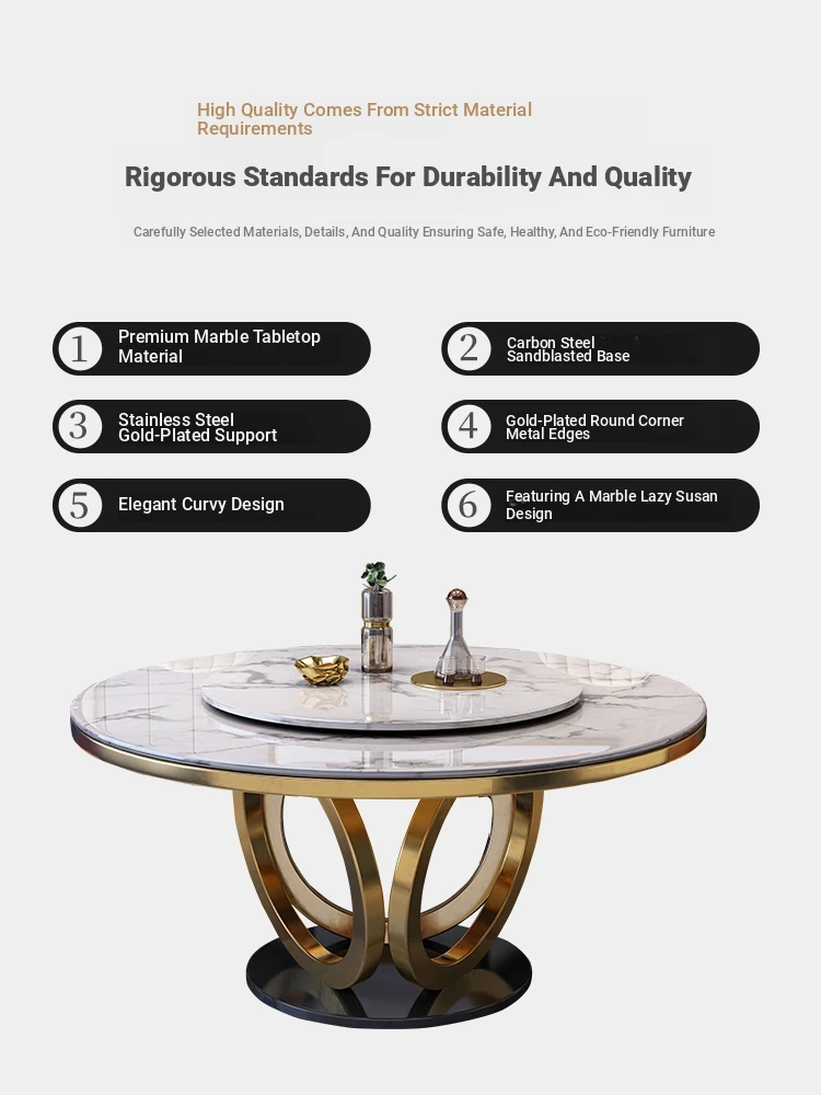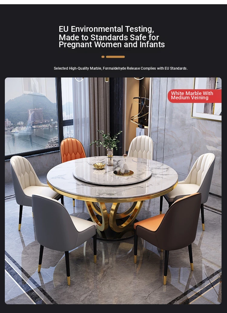 Accessible Luxury marble dining table + Cat's claw leather dining chair * 6 [send turntable]]