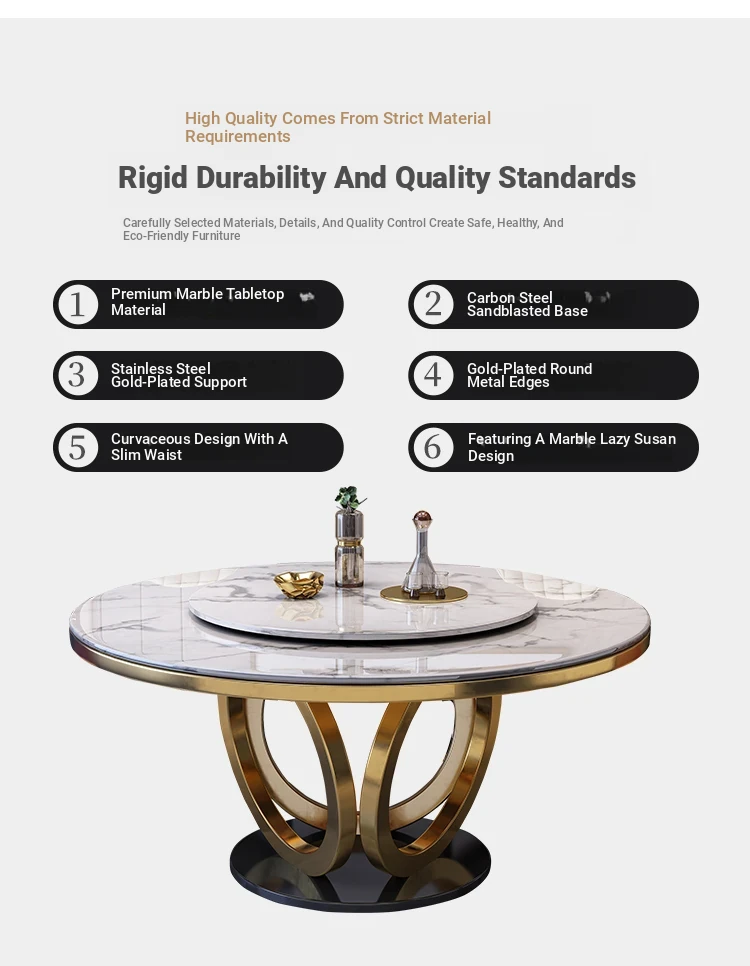 Modern Minimalist Round Dining Table Set with Marble Finish - Elegant Lightweight Luxury Design for Small Spaces, Complete with Rotating Lazy Susan, Perfect for Home Dining Rooms