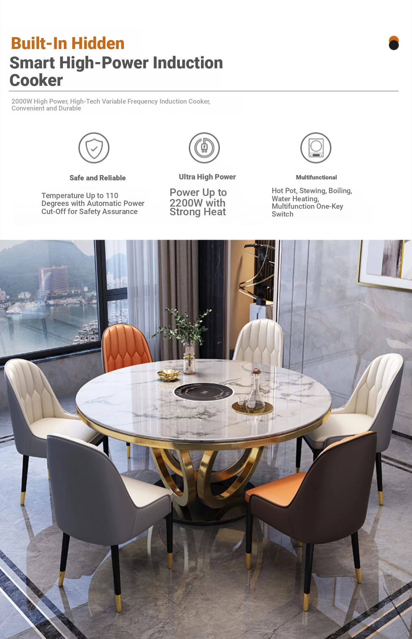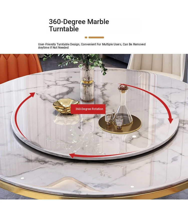 Accessible Luxury marble dining table + Cat's claw leather dining chair * 8 [send turntable]]