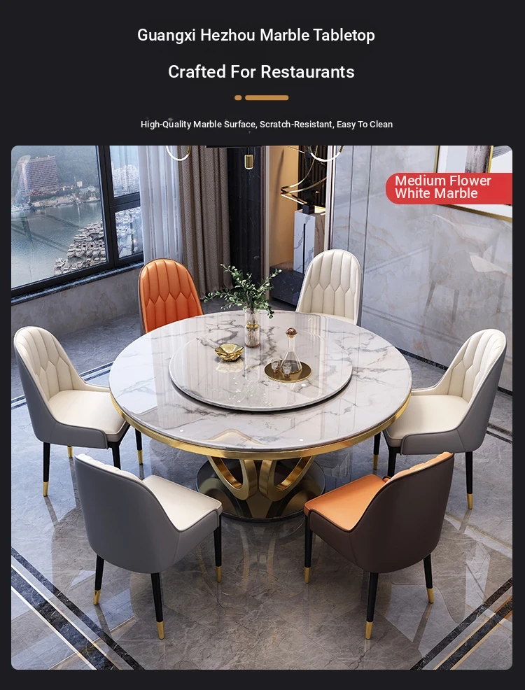 Accessible Luxury marble dining table + Cat's claw leather dining chair * 12 [send turntable]]