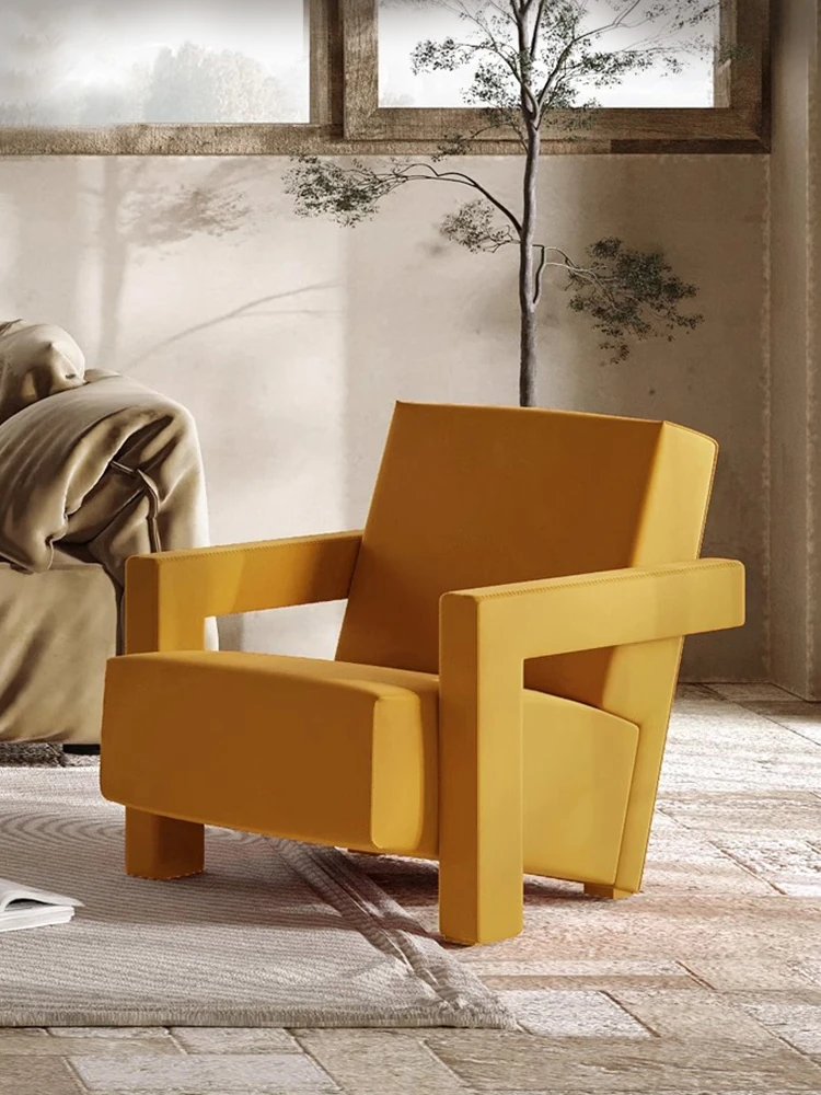 Nordic Designer Minimalist Leisure Chair - Single Sofa Armchair for Artful Relaxation, Stylish Fabric Upholstery, Perfect for Balcony Comfort and Long Sitting