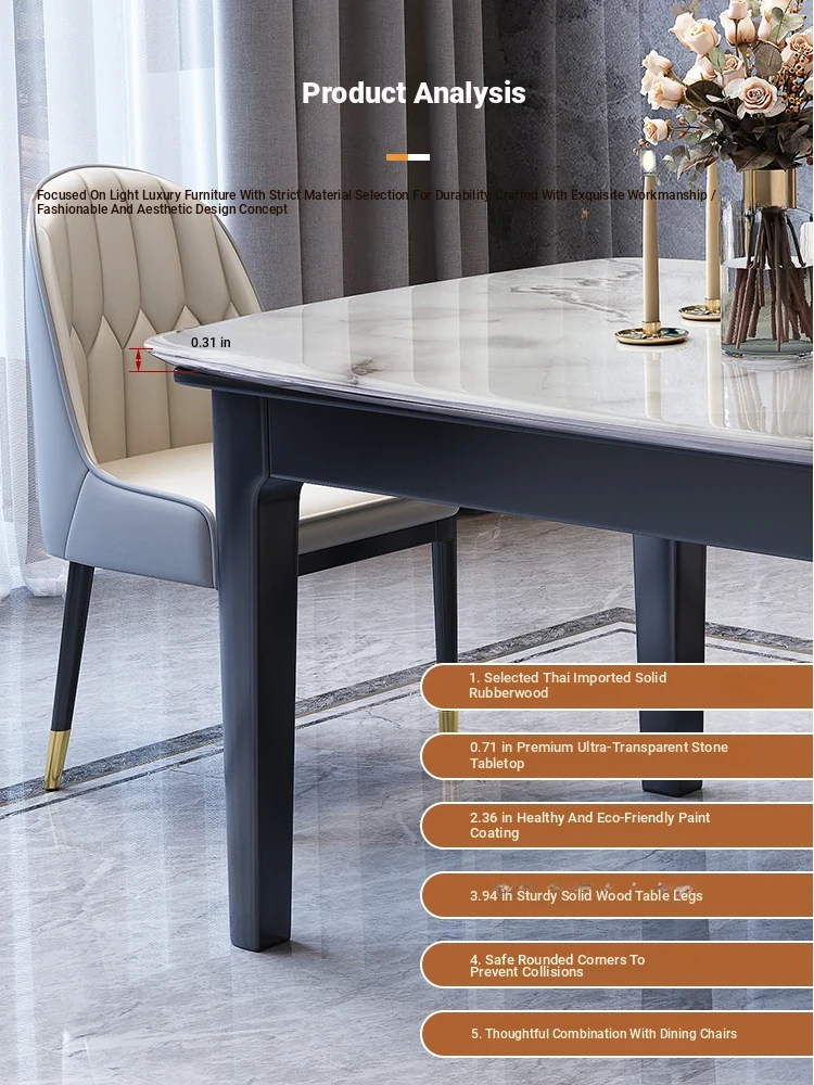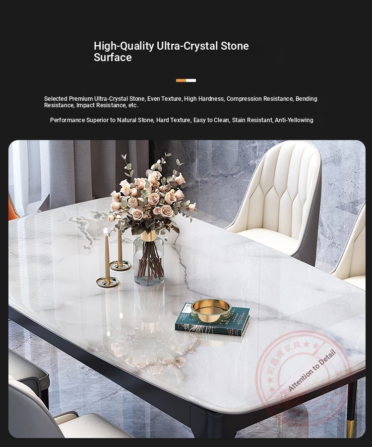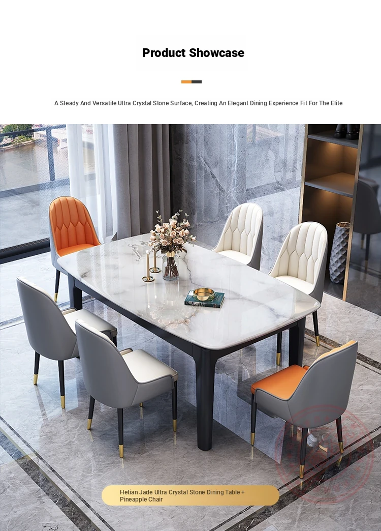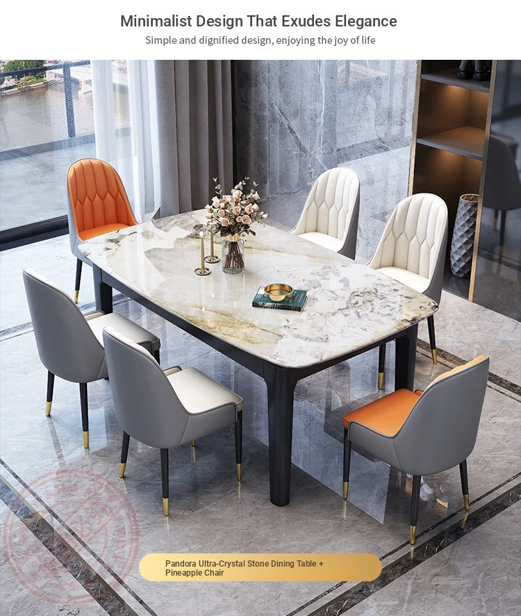 Accessible Luxury Super stone dining table + Cat Claw leather dining chair * 6