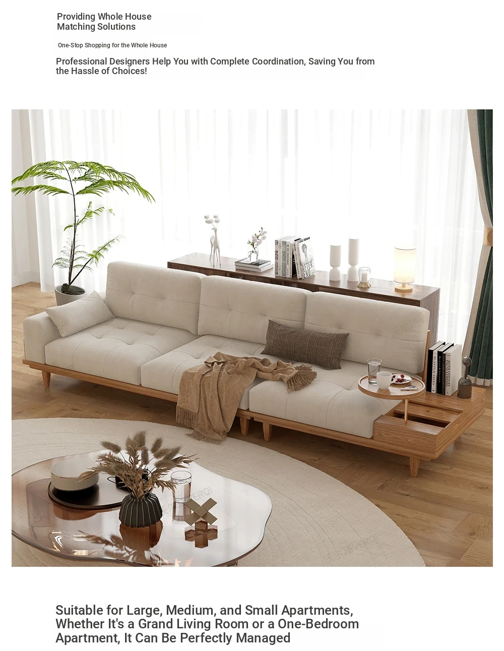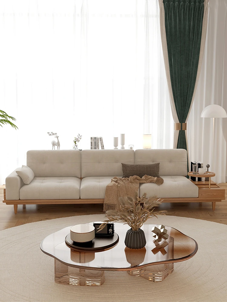 Nordic Style Solid Wood Sofa for Small Spaces - Minimalist Modern Japanese Three-Seater with Latex Cushion - Perfect for Cozy Living Rooms