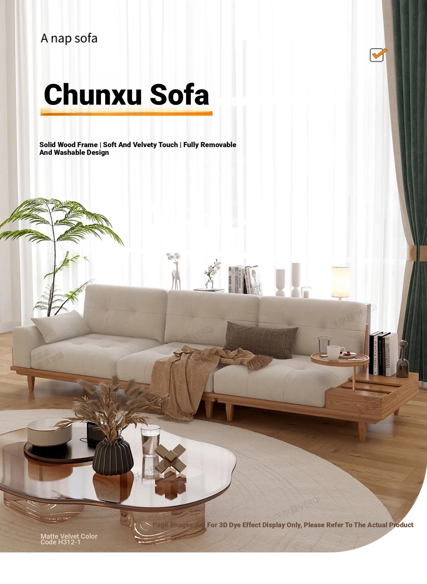 Frosted Velvet [down + Bamboo Charcoal Sponge + Wood Color Frame]
