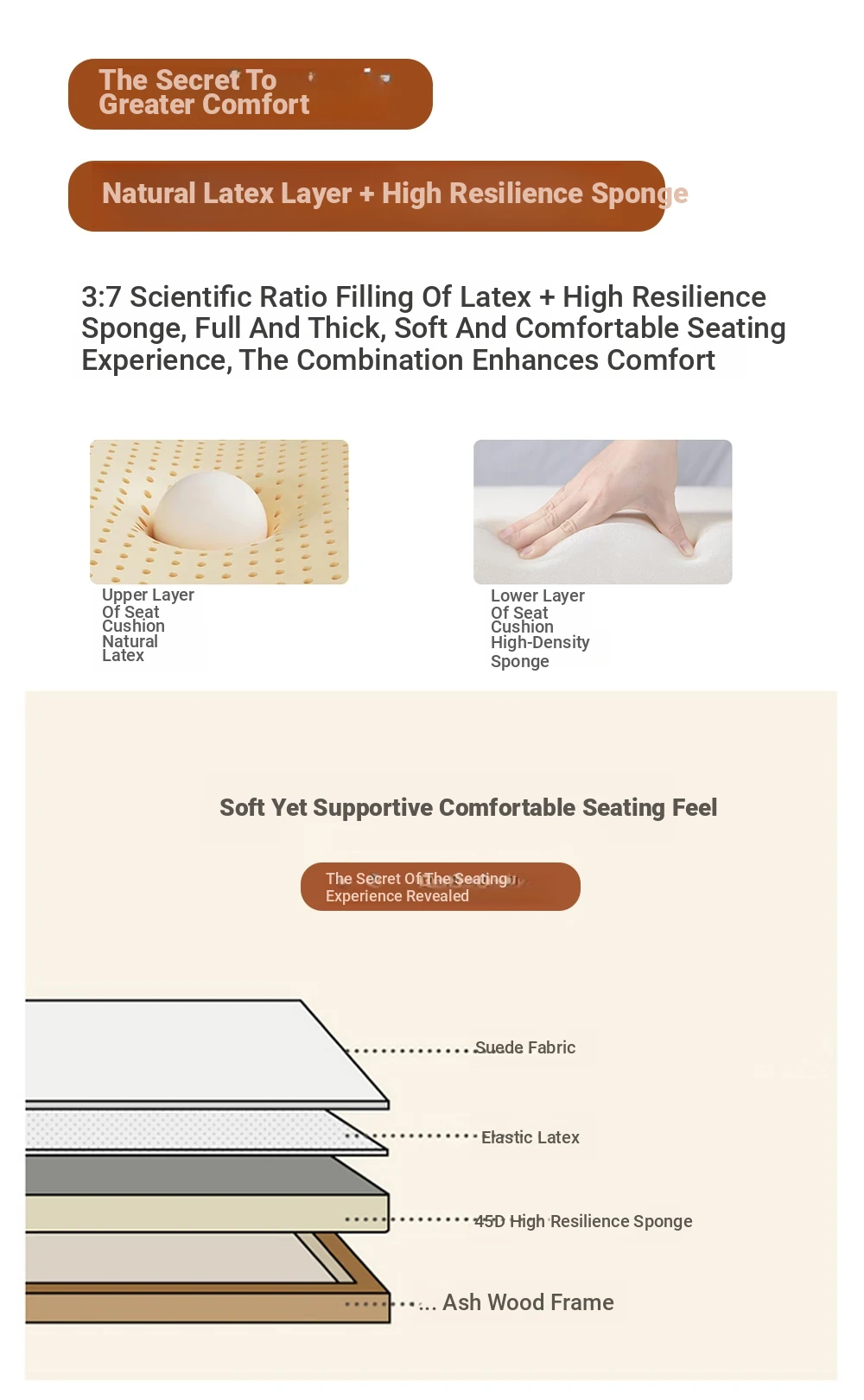 Imitation Cotton and Linen [Latex + Bamboo Charcoal Sponge + Wood Color Frame]