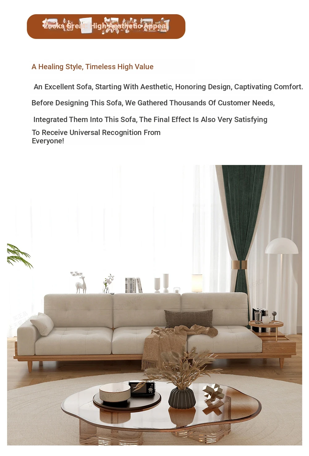 116.14in Three-Seater [Side Cabinet Can Be Left or Right]