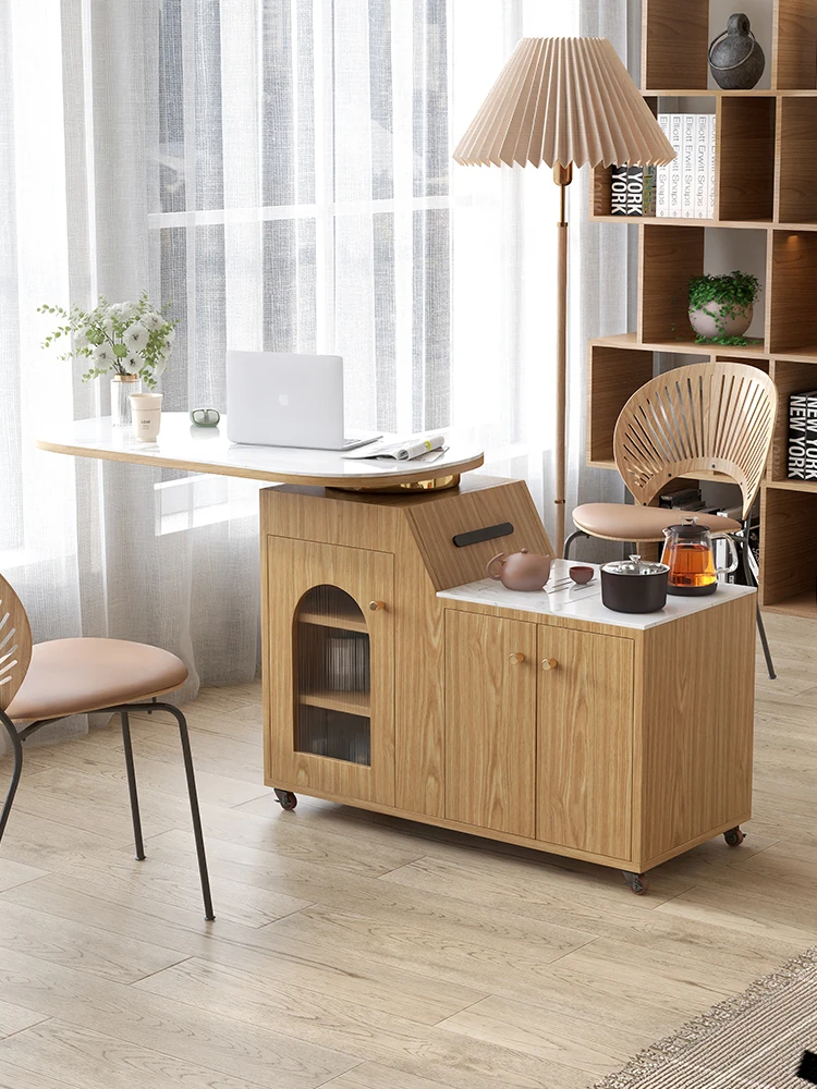 Nordic Style Solid Wood Tea Trolley - Versatile Coffee & Tea Side Table for Living Room, Balcony, and Sofa Area, Easy to Move and Perfect for Home Use.