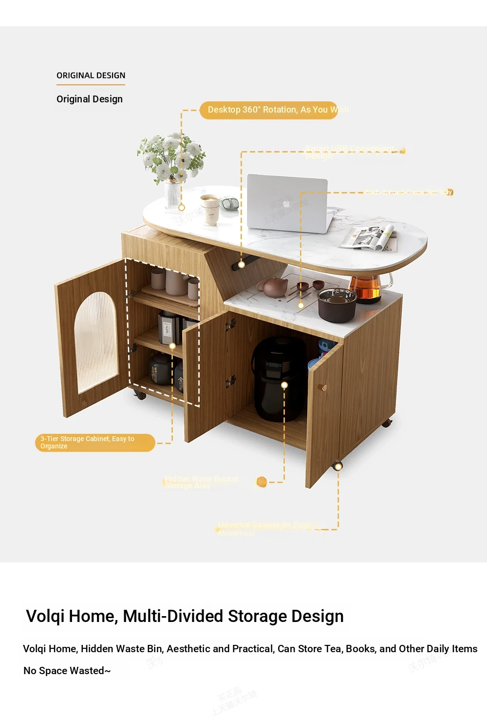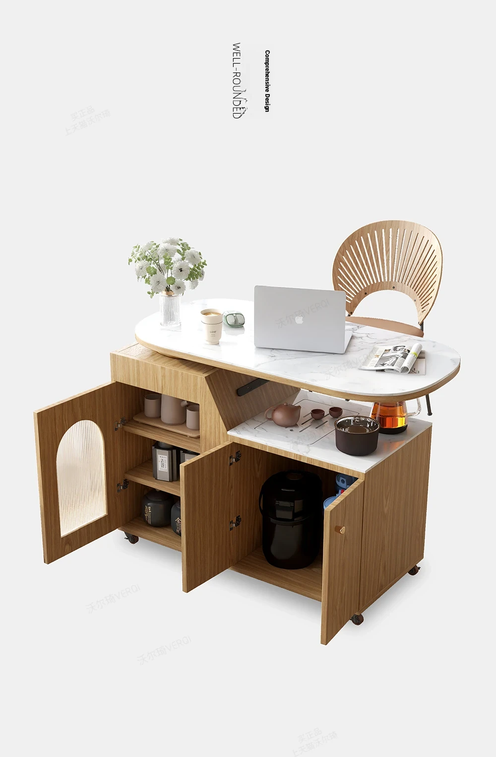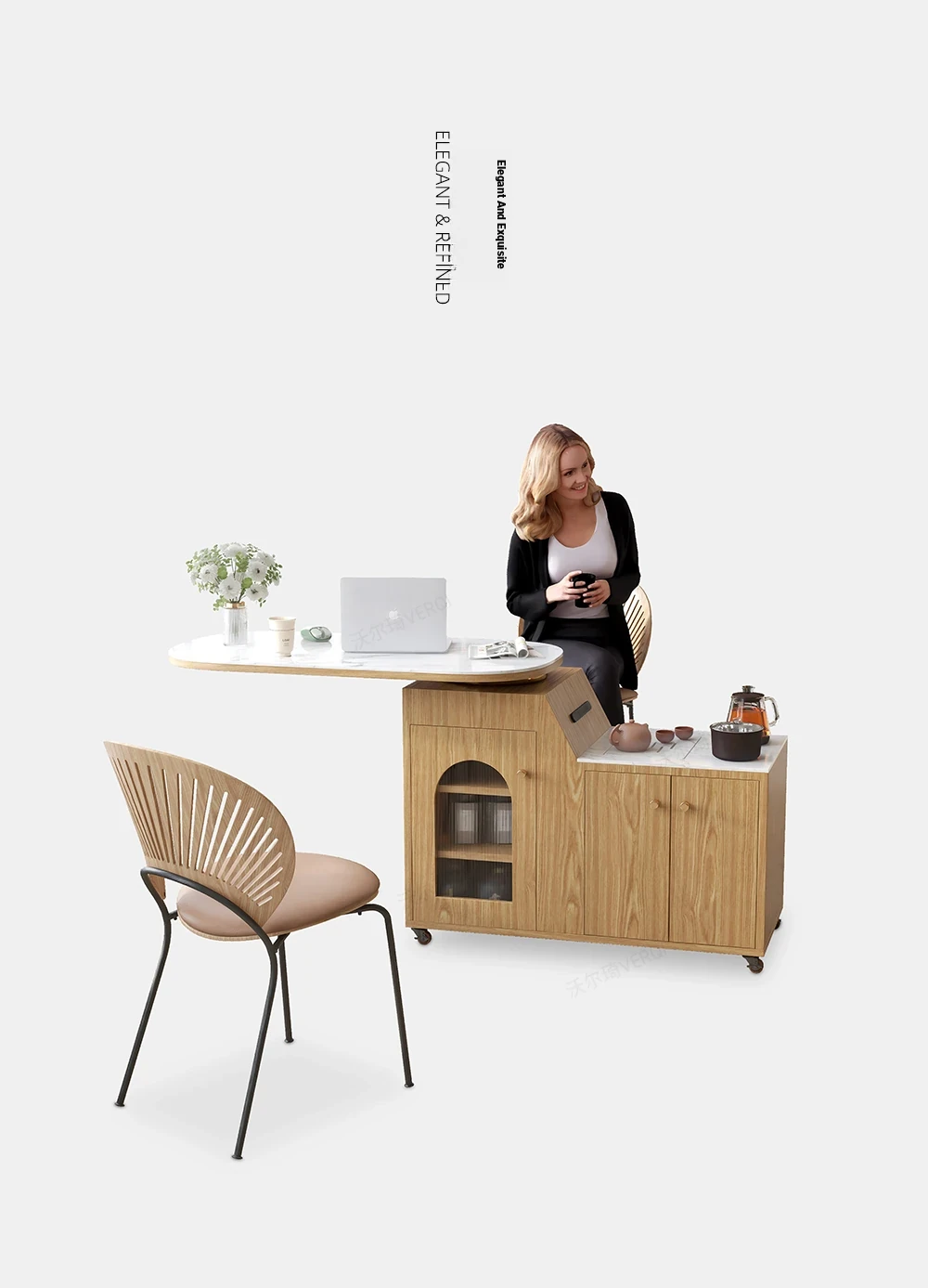 Mobile Tea Cart + Host Chair*1 (Without Tea Tray)