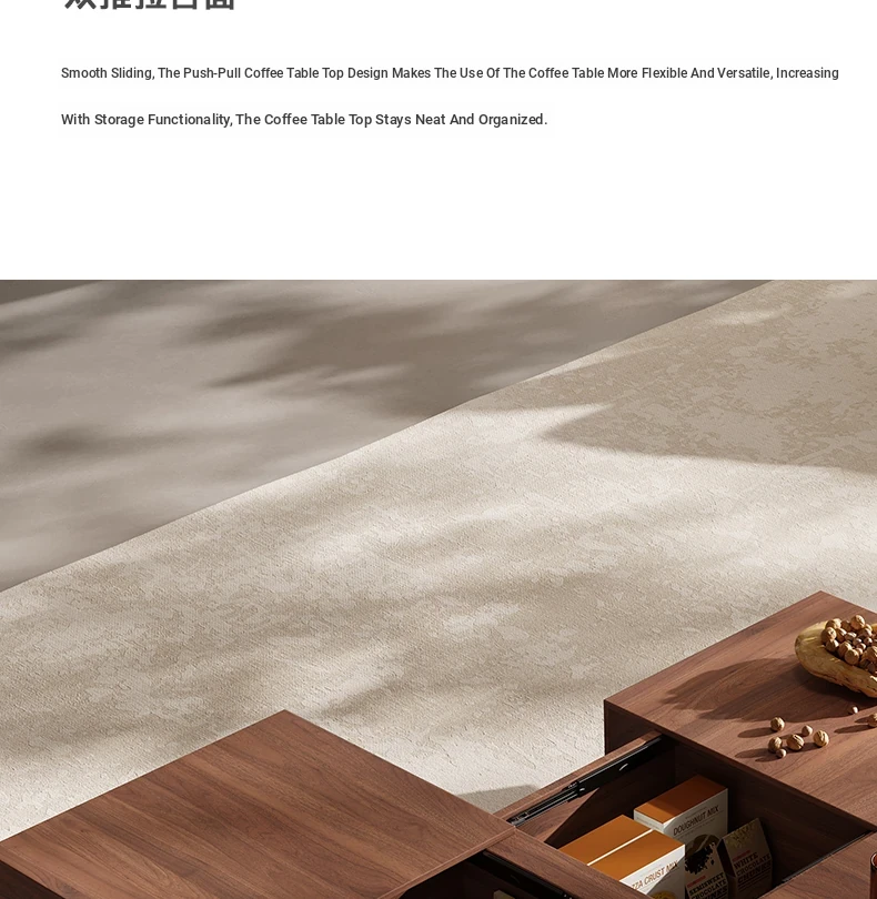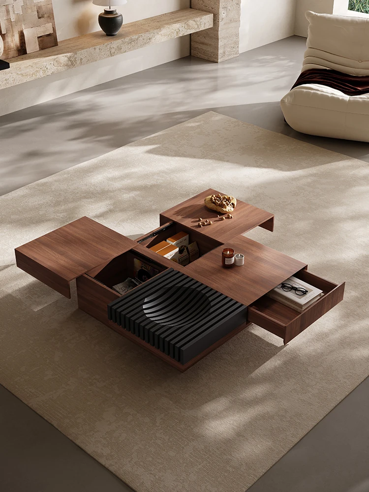 North American Black Walnut Coffee Table - Nordic Modern Minimalist Square Design, Creative Solid Wood Storage Table for Living Room