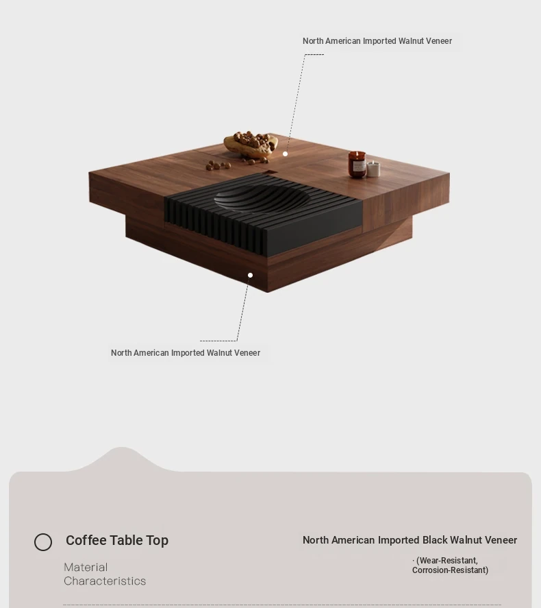 Square Coffee Table 39.37in [America Black Walnut Veneer + Multi-Layer Solid Wood Board]