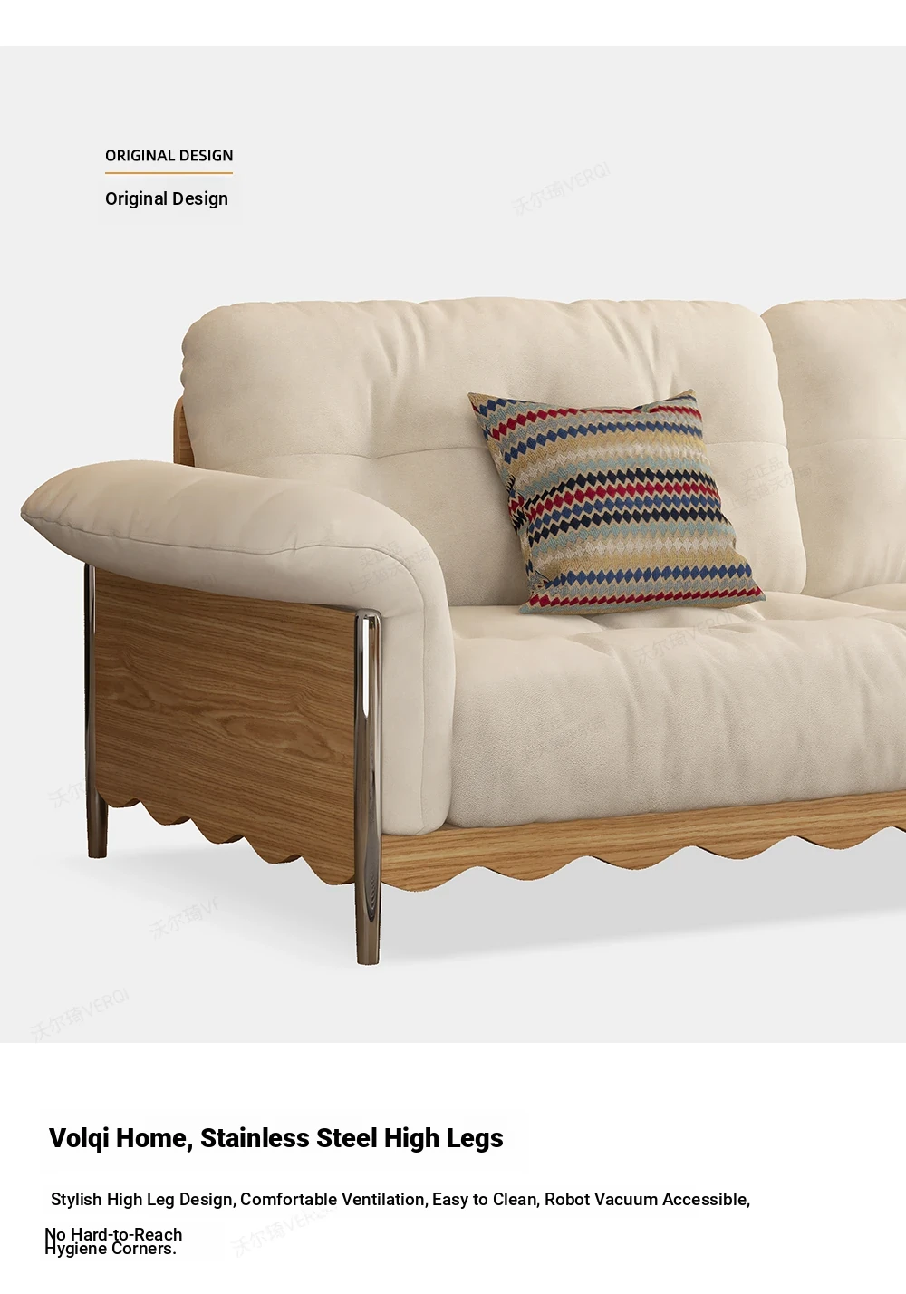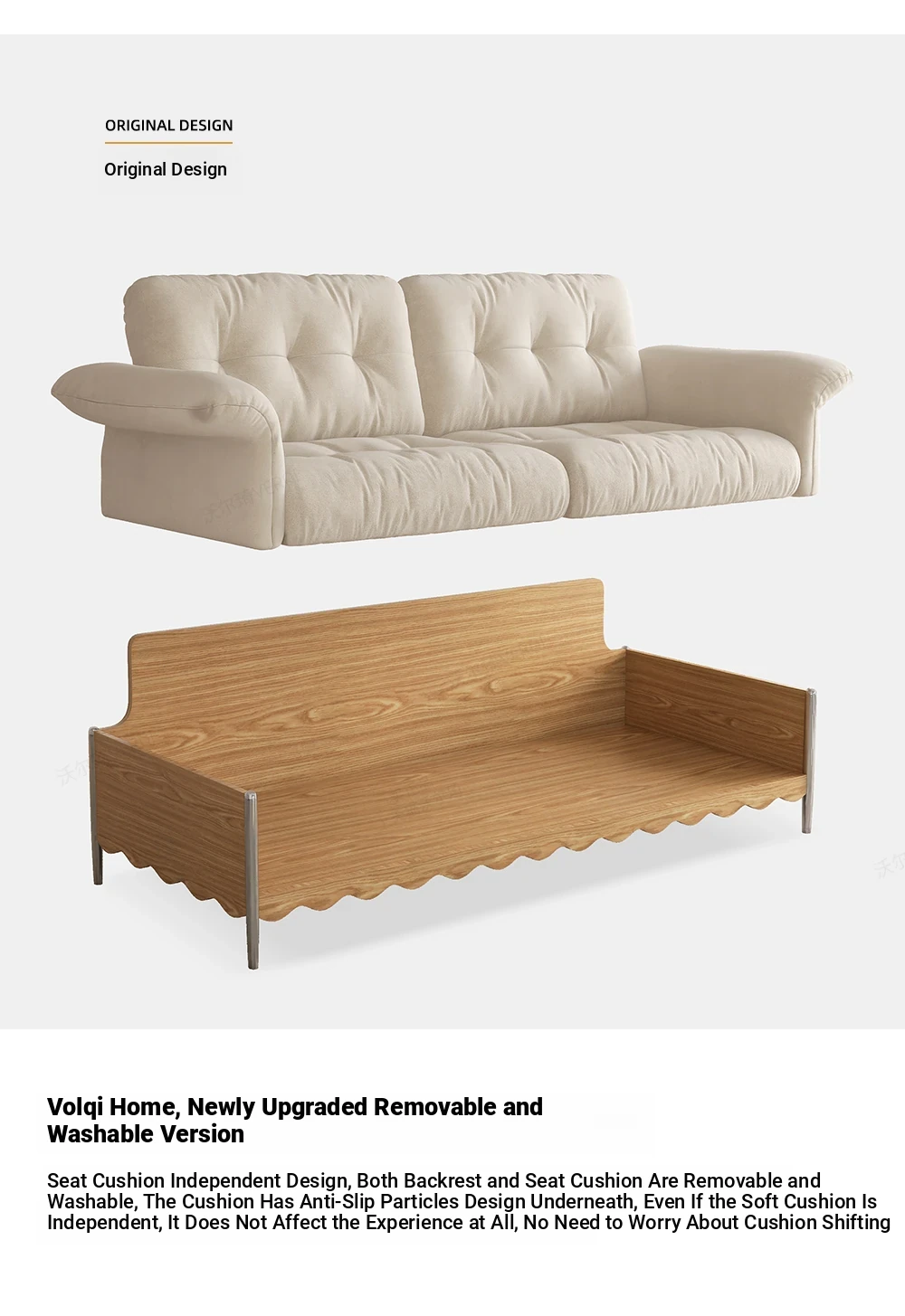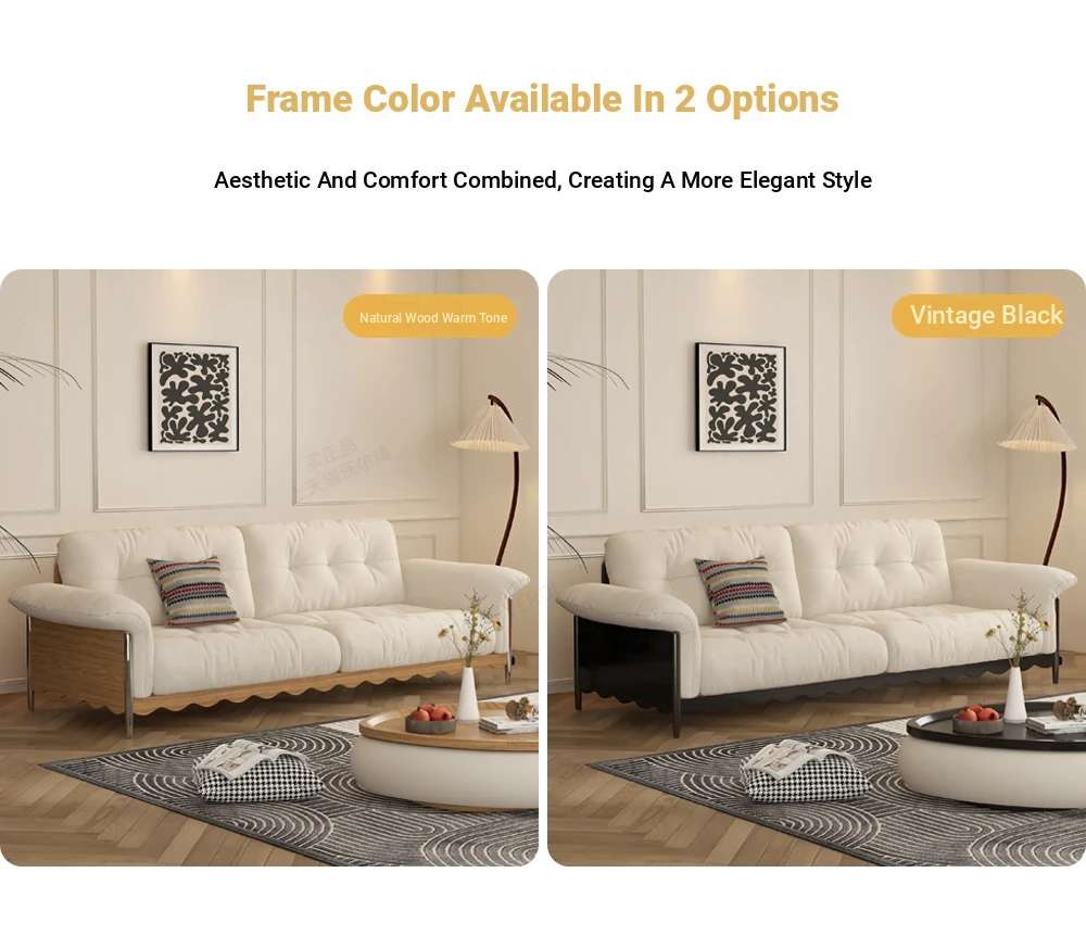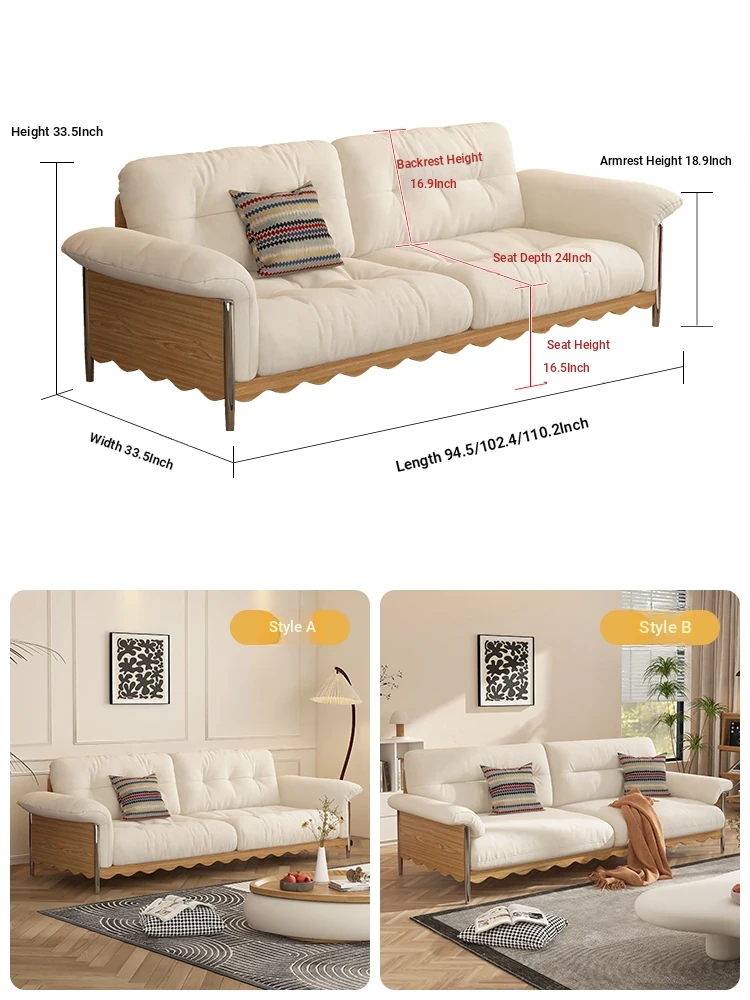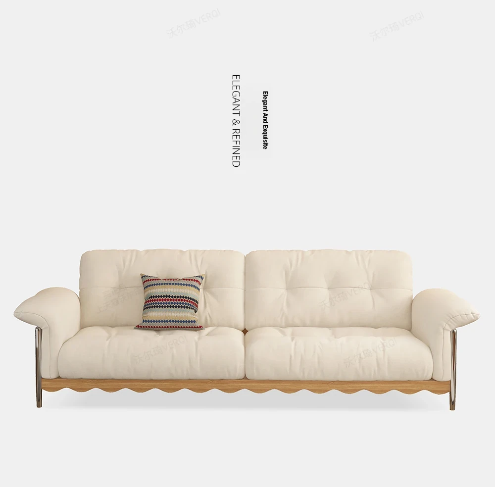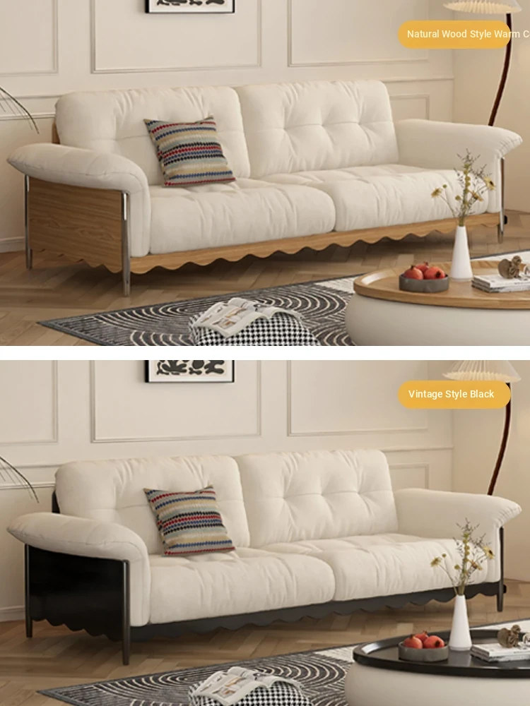 Retro Japanese Solid Wood Sofa in Natural Wood Finish for Small Living Rooms – Removable and Washable Cloud Cream Fabric, Cat Scratch Resistant, Ideal for Cozy Spaces
