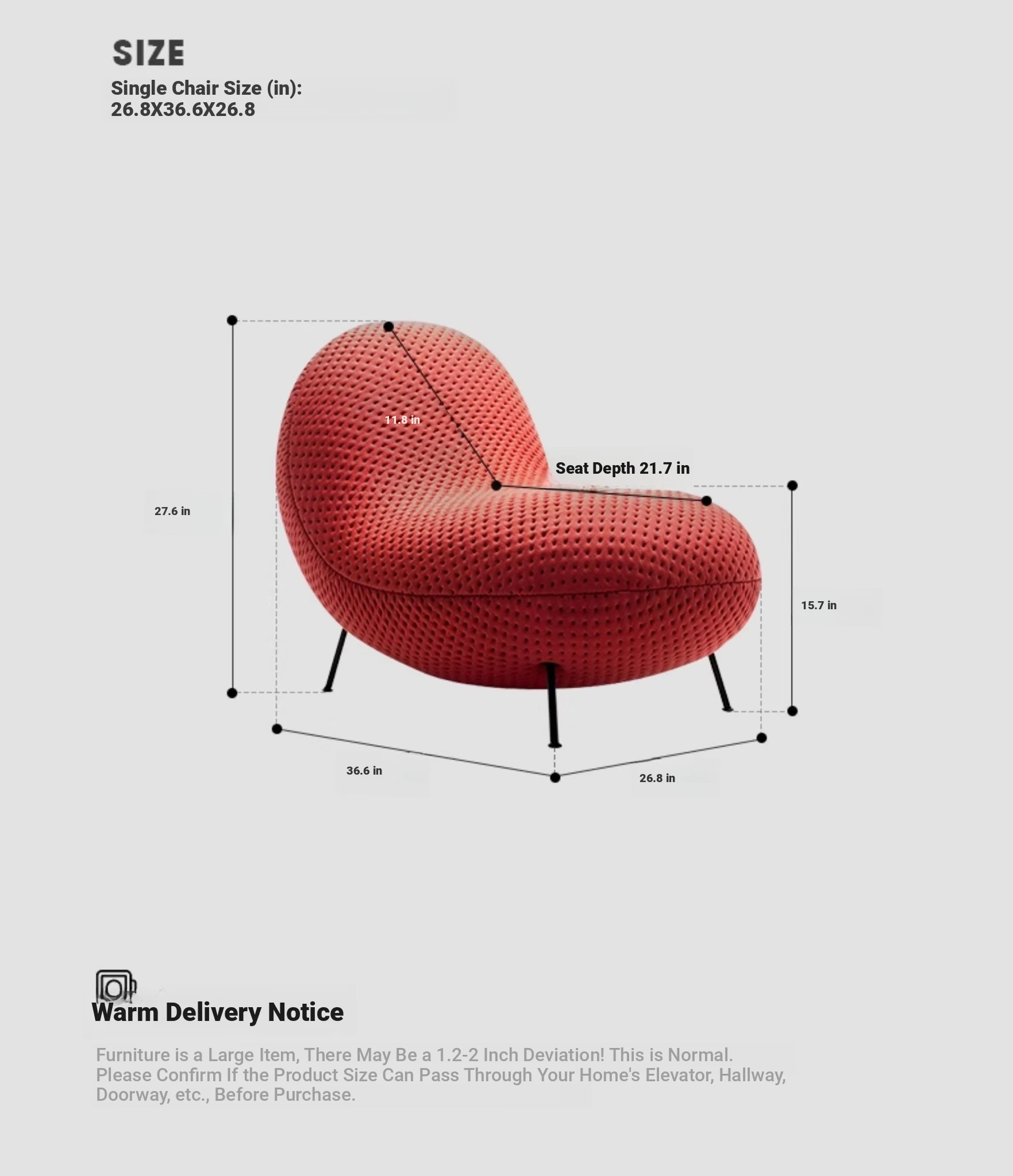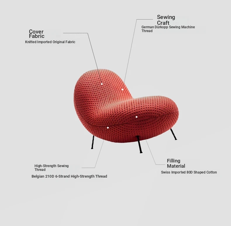 Baba [Original 3D Knitted Fabric + High Elastic Styling Cotton] [Red Single Chair] 25.59in*39.37in*29.53in