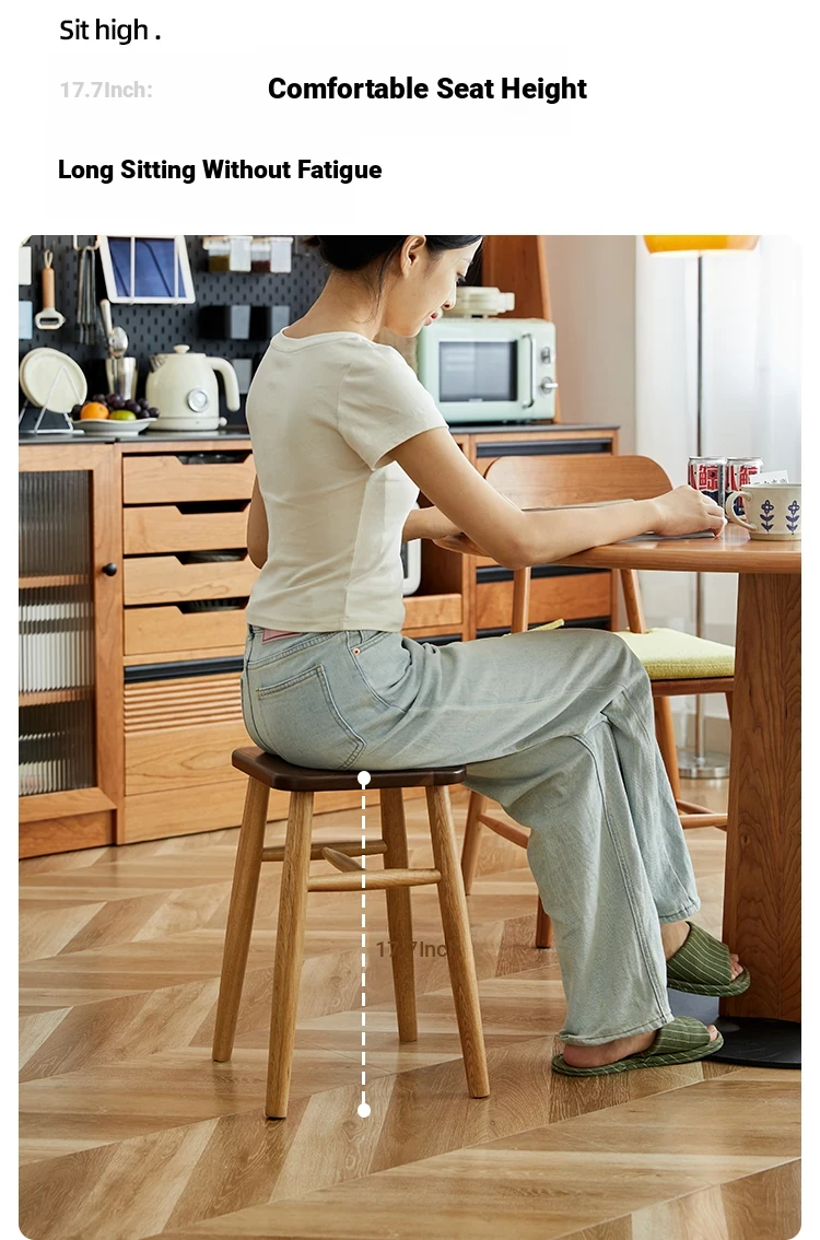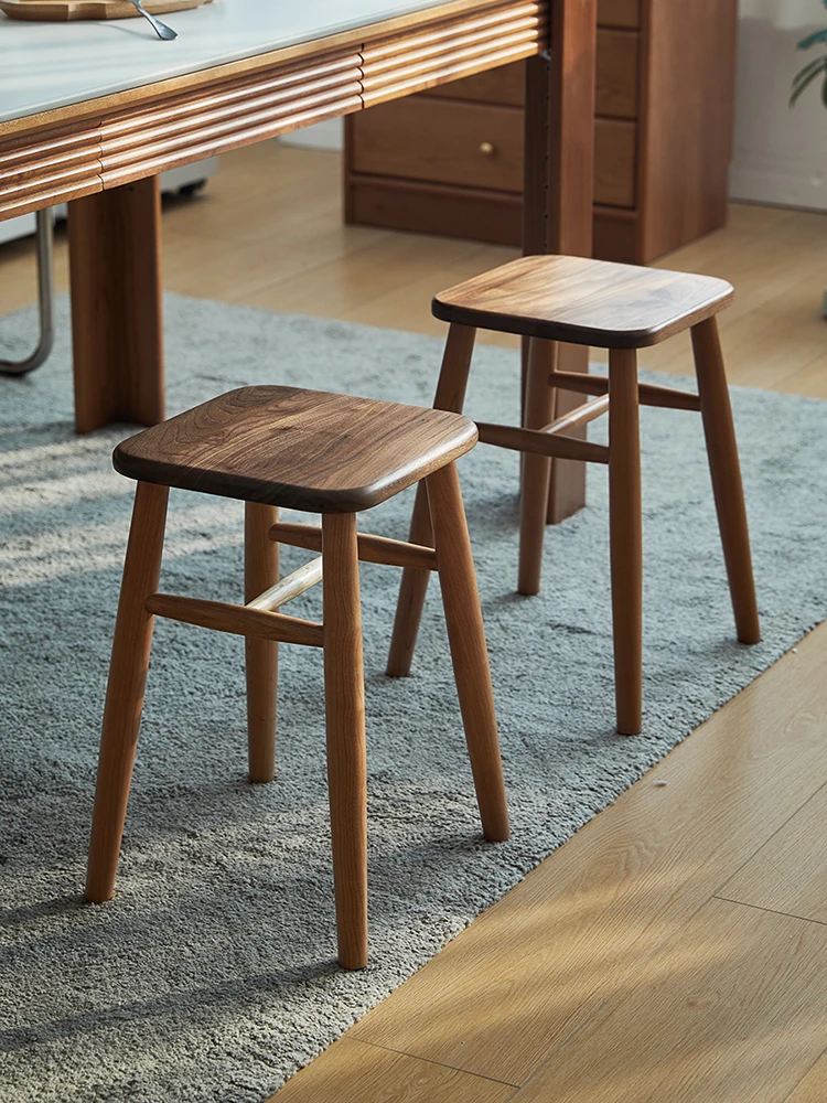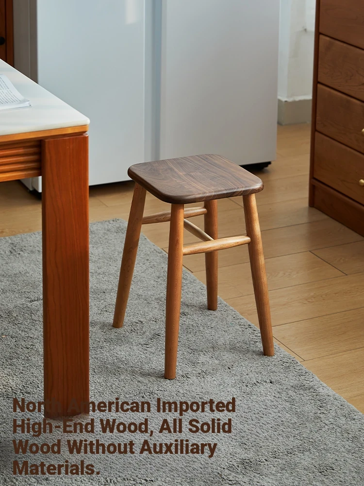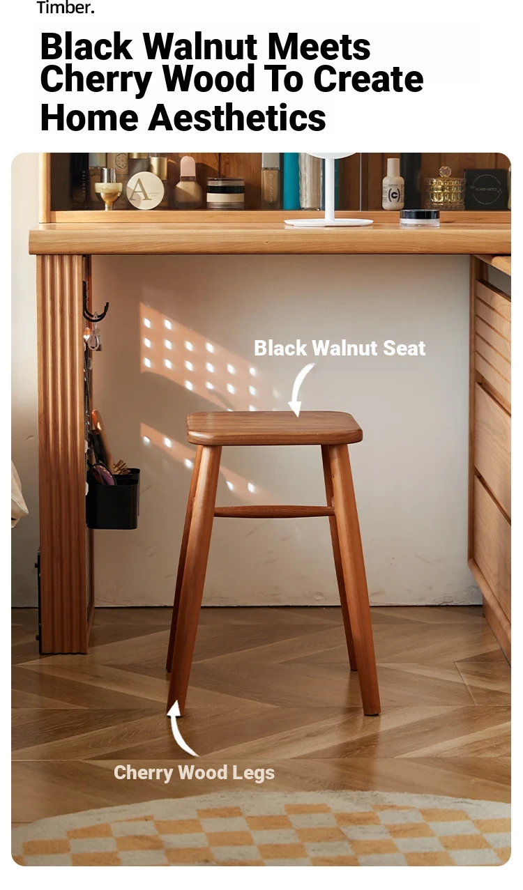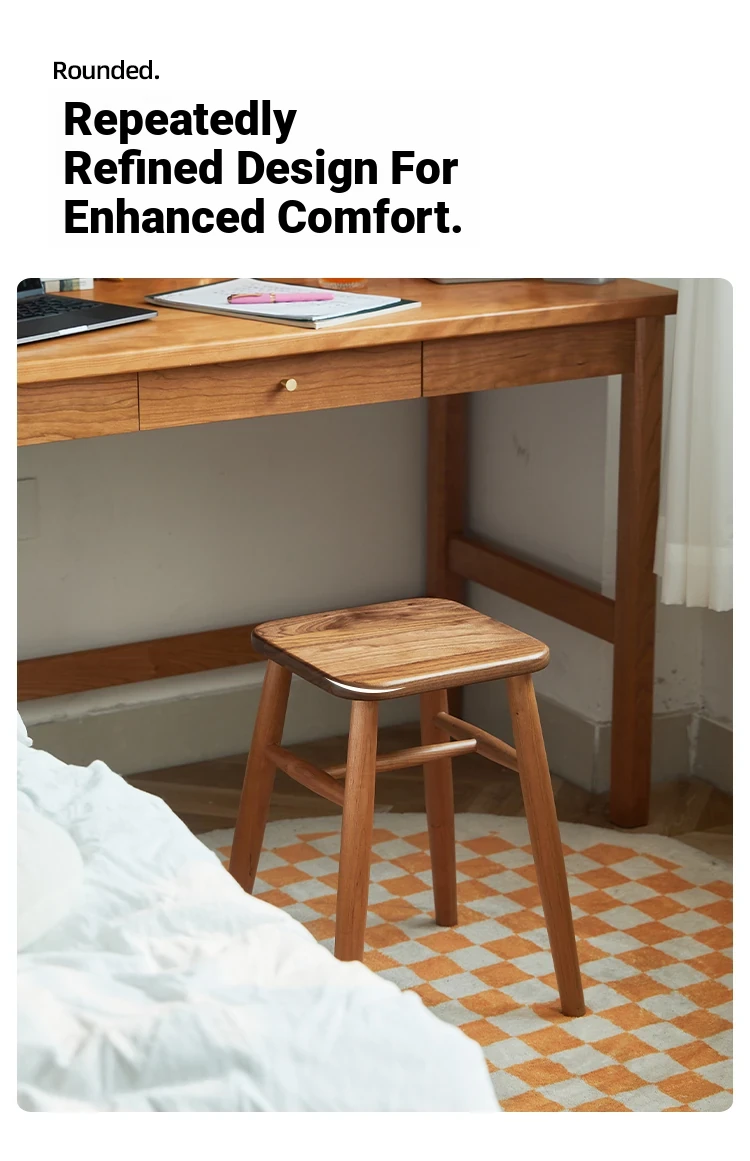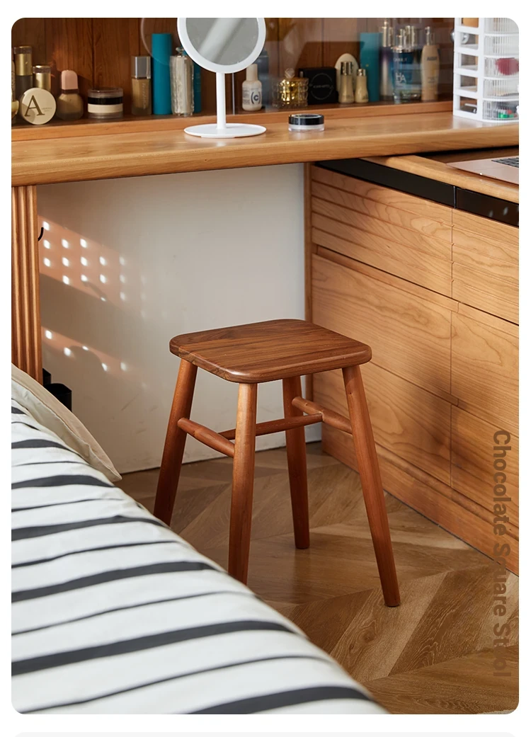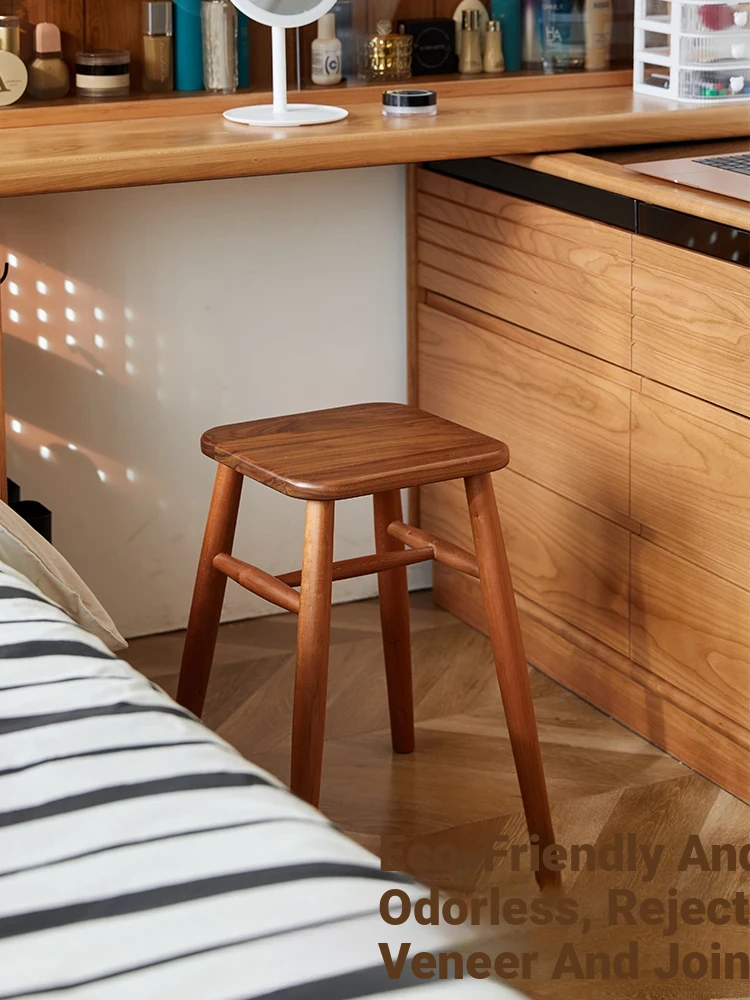 Solid Wood Cherry Makeup Stool - Stylish Natural Wood Dressing Table Seat - Perfect for Girls - Rustic Dining Room Mortise & Tenon Design - Elegant Walnut Round Stool