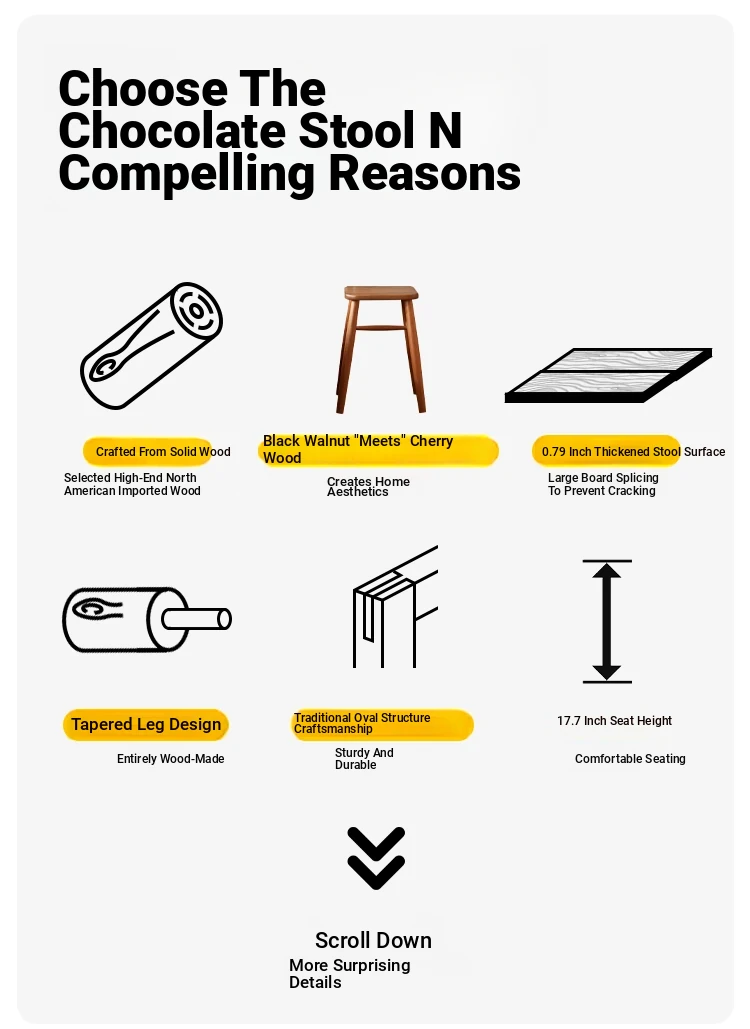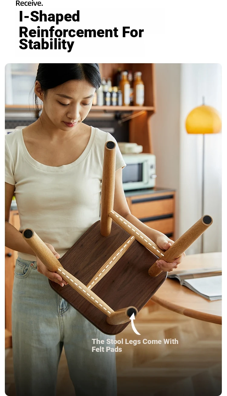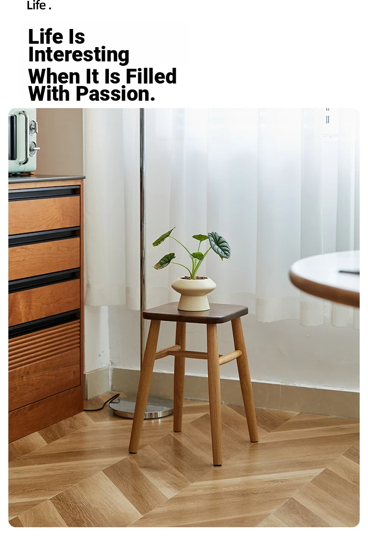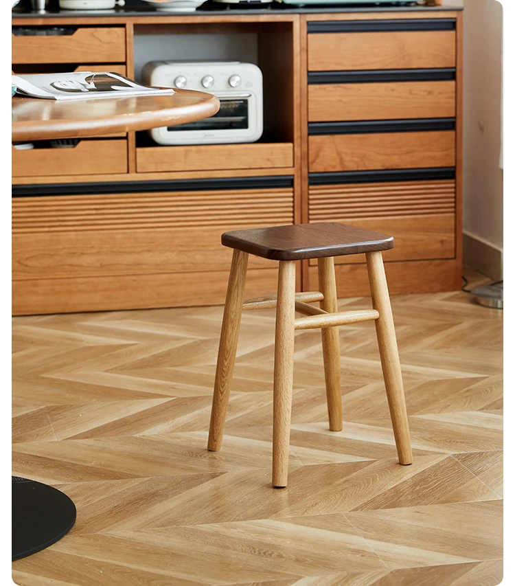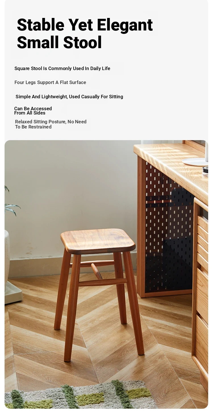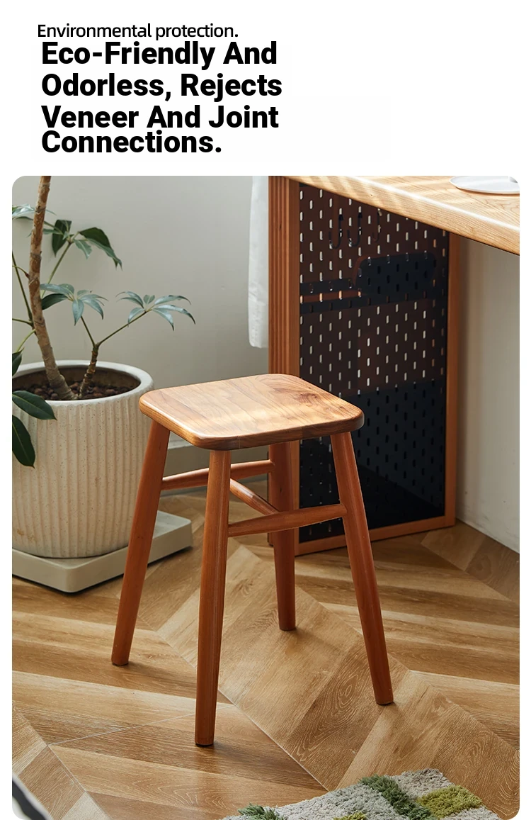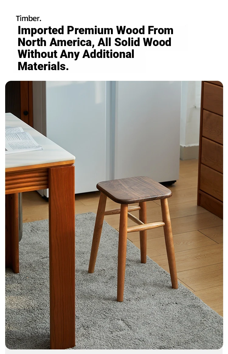 Solid Wood Cherry Makeup Stool - Stylish Natural Wood Dressing Table Seat - Perfect for Girls - Rustic Dining Room Mortise & Tenon Design - Elegant Walnut Round Stool