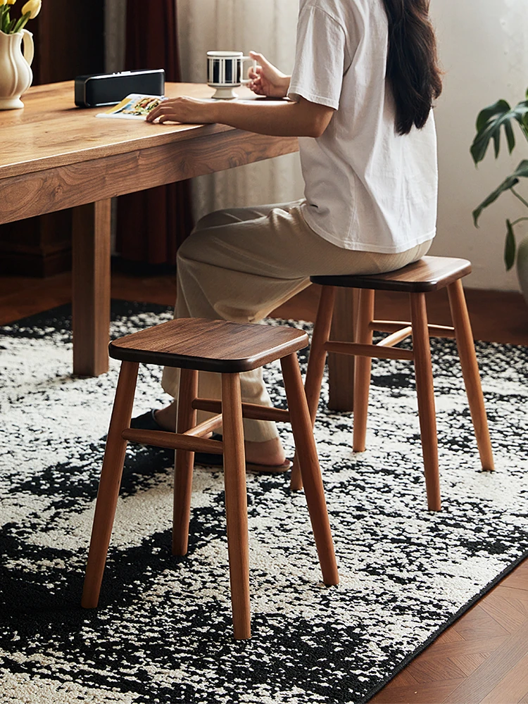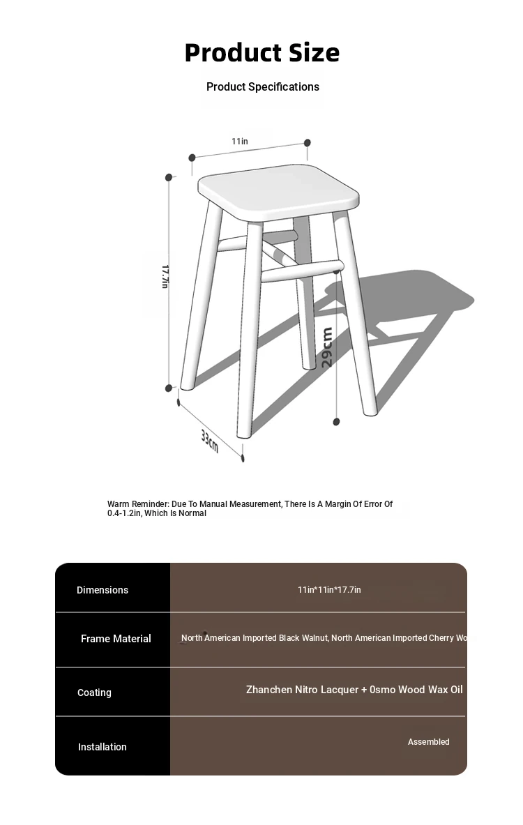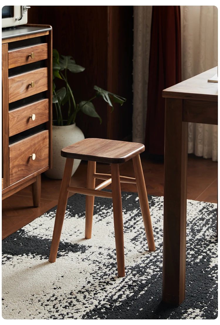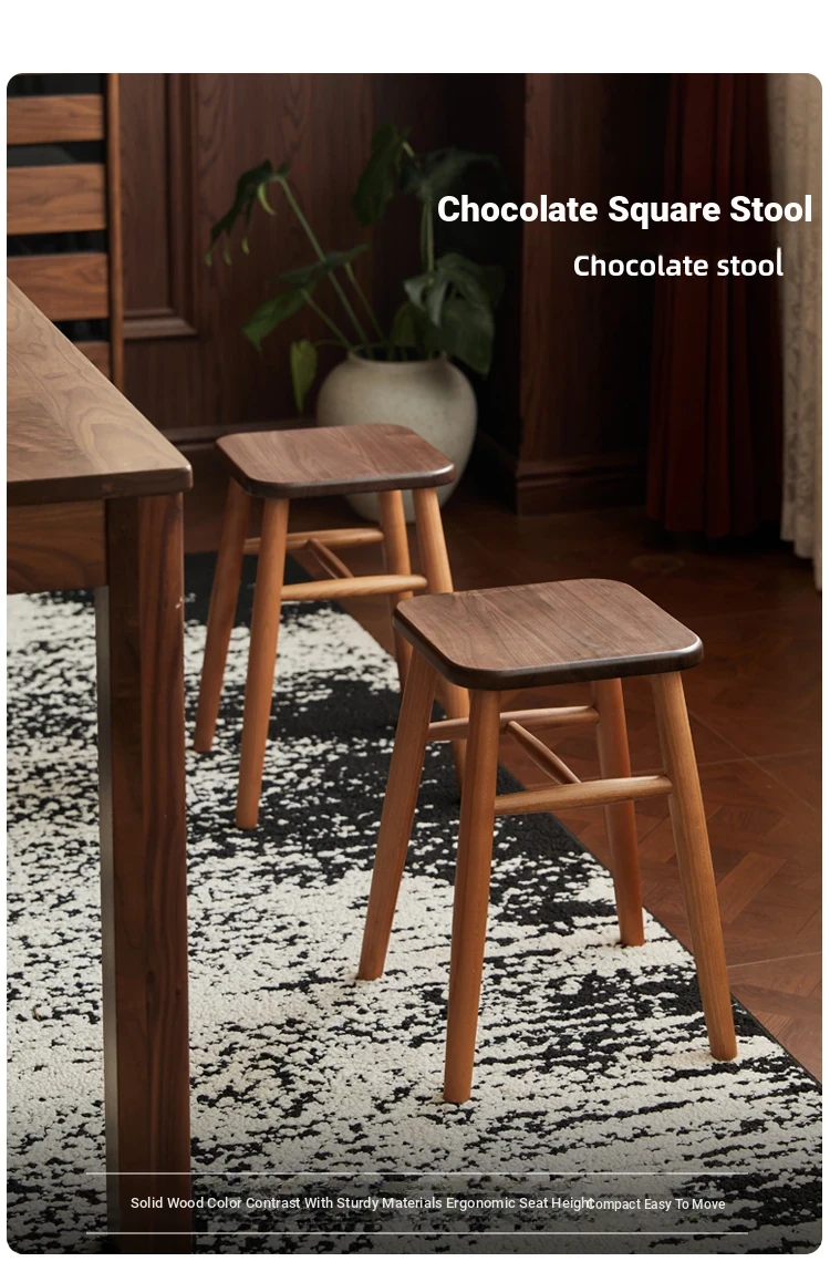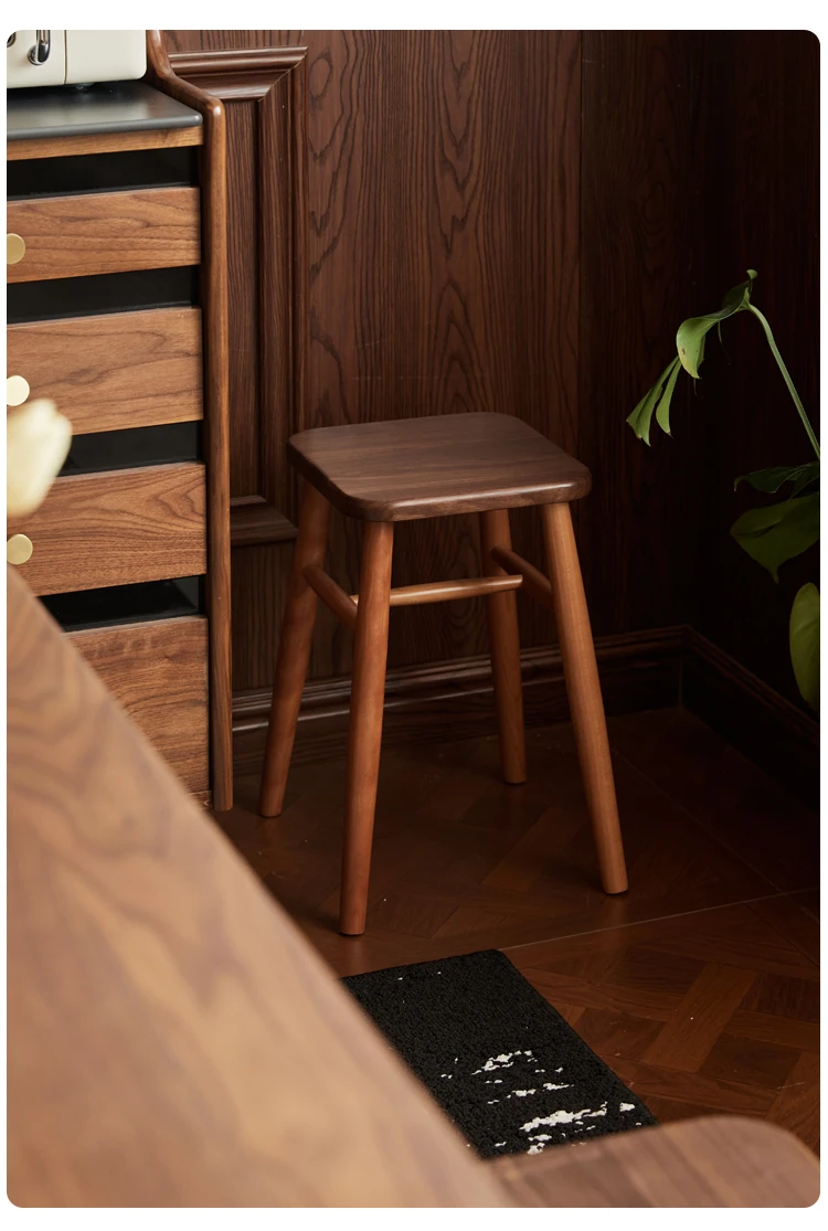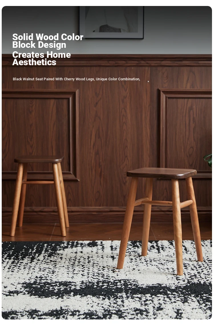 Solid Wood Vanity Stool - Black Walnut & Cherry Wood, Rustic Style, Minimalist Design for Dining Room, Mortise and Tenon Joint, Versatile Square & Round Options