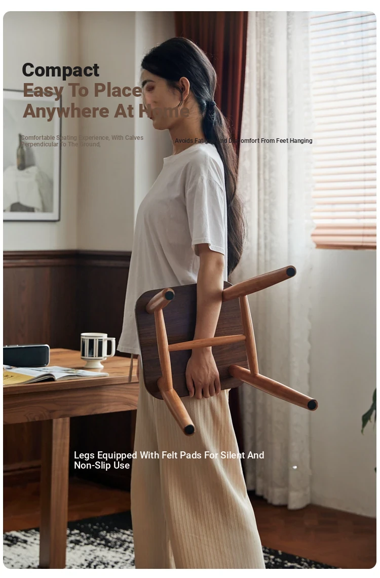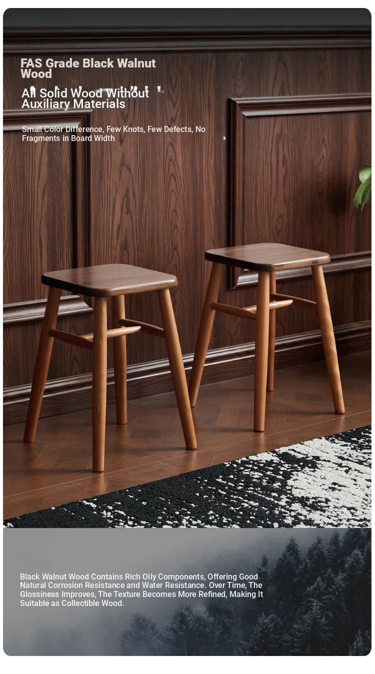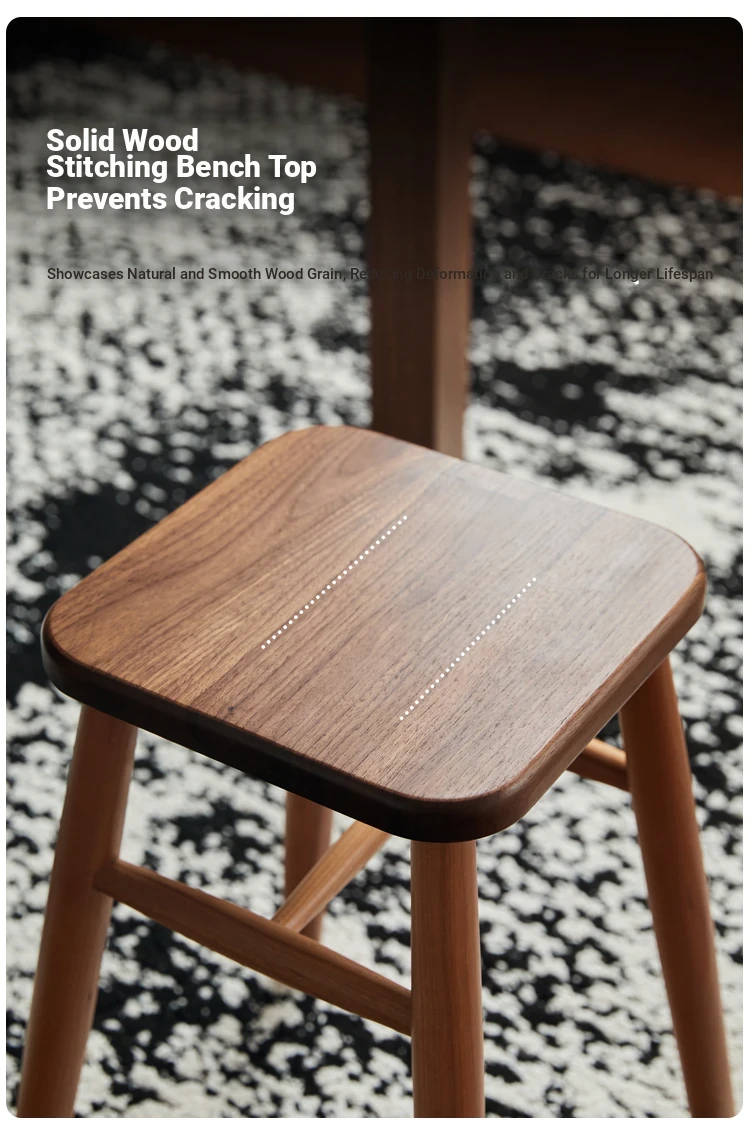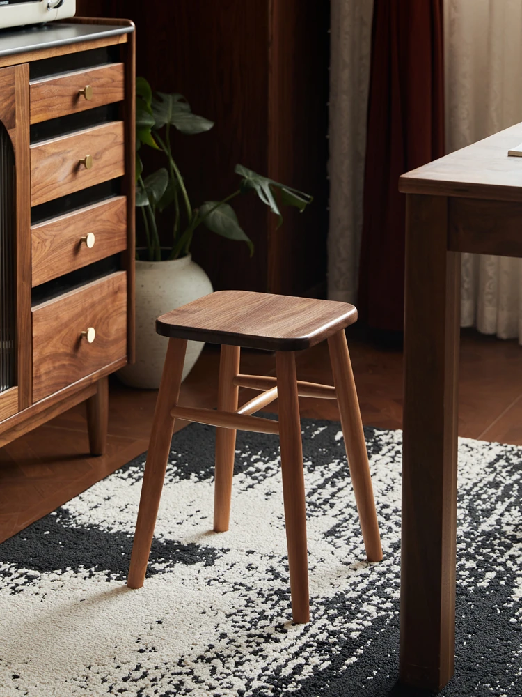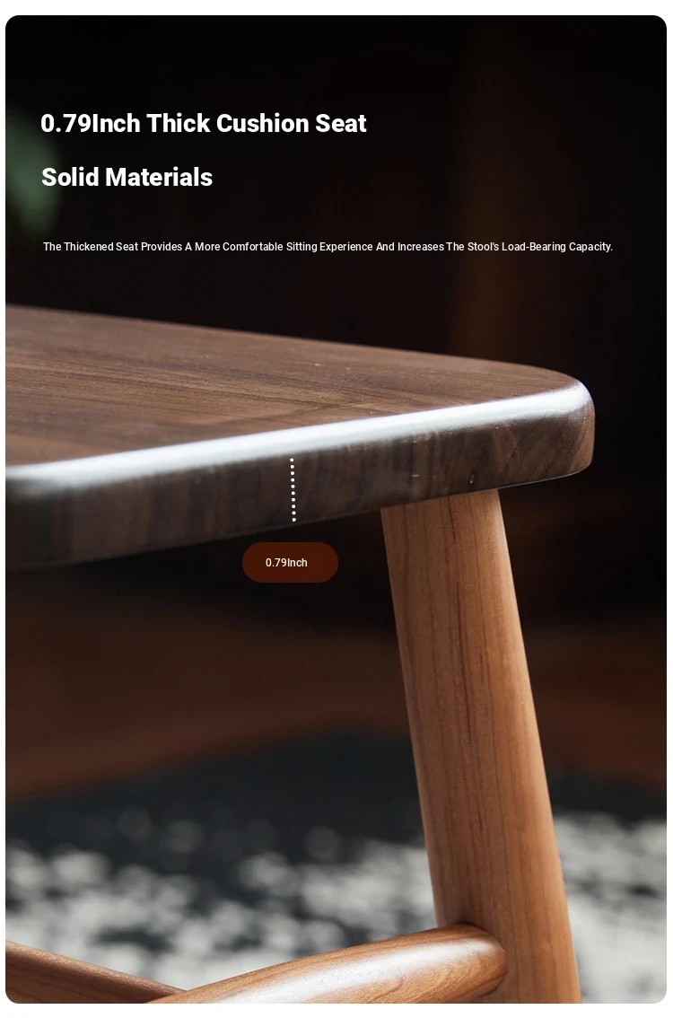 Solid Wood Vanity Stool - Black Walnut & Cherry Wood, Rustic Style, Minimalist Design for Dining Room, Mortise and Tenon Joint, Versatile Square & Round Options