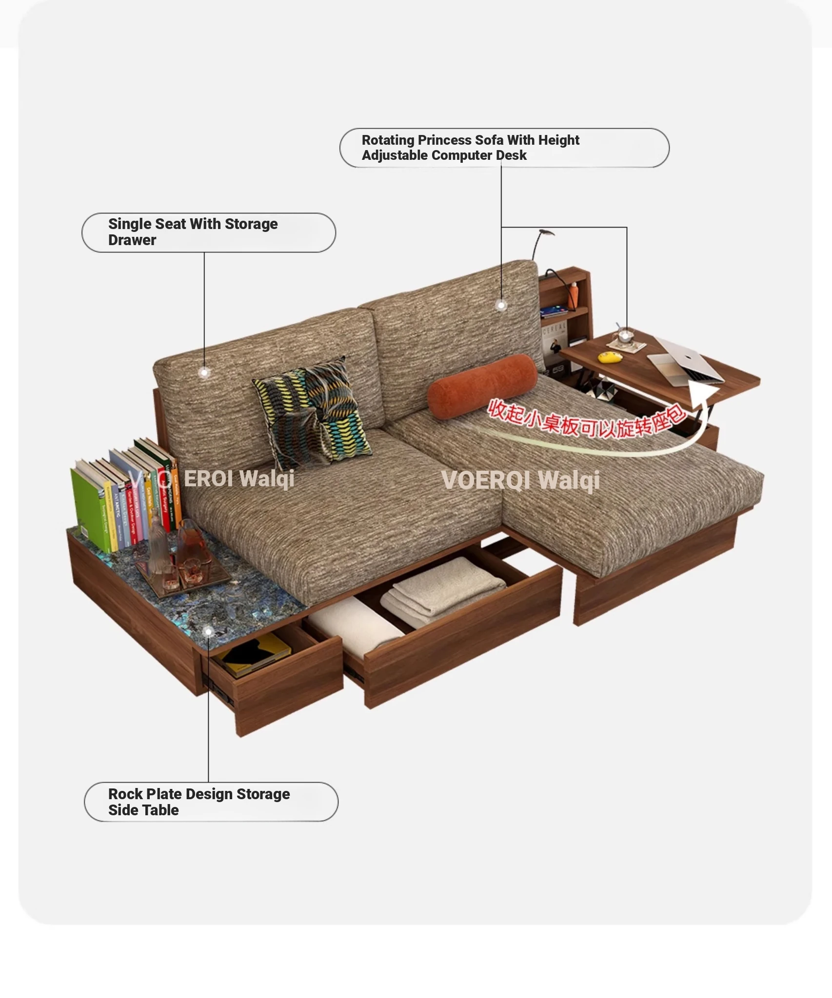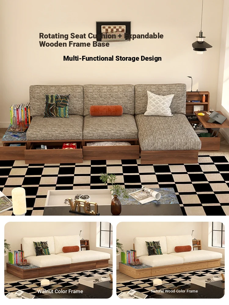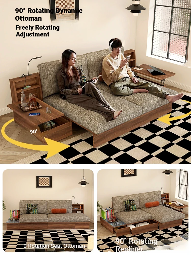 Vintage Velvet Upholstered Sofa with Rotating Chaise Lounge – Multifunctional Living Room Island Sofa for a Stylish and Cozy Space