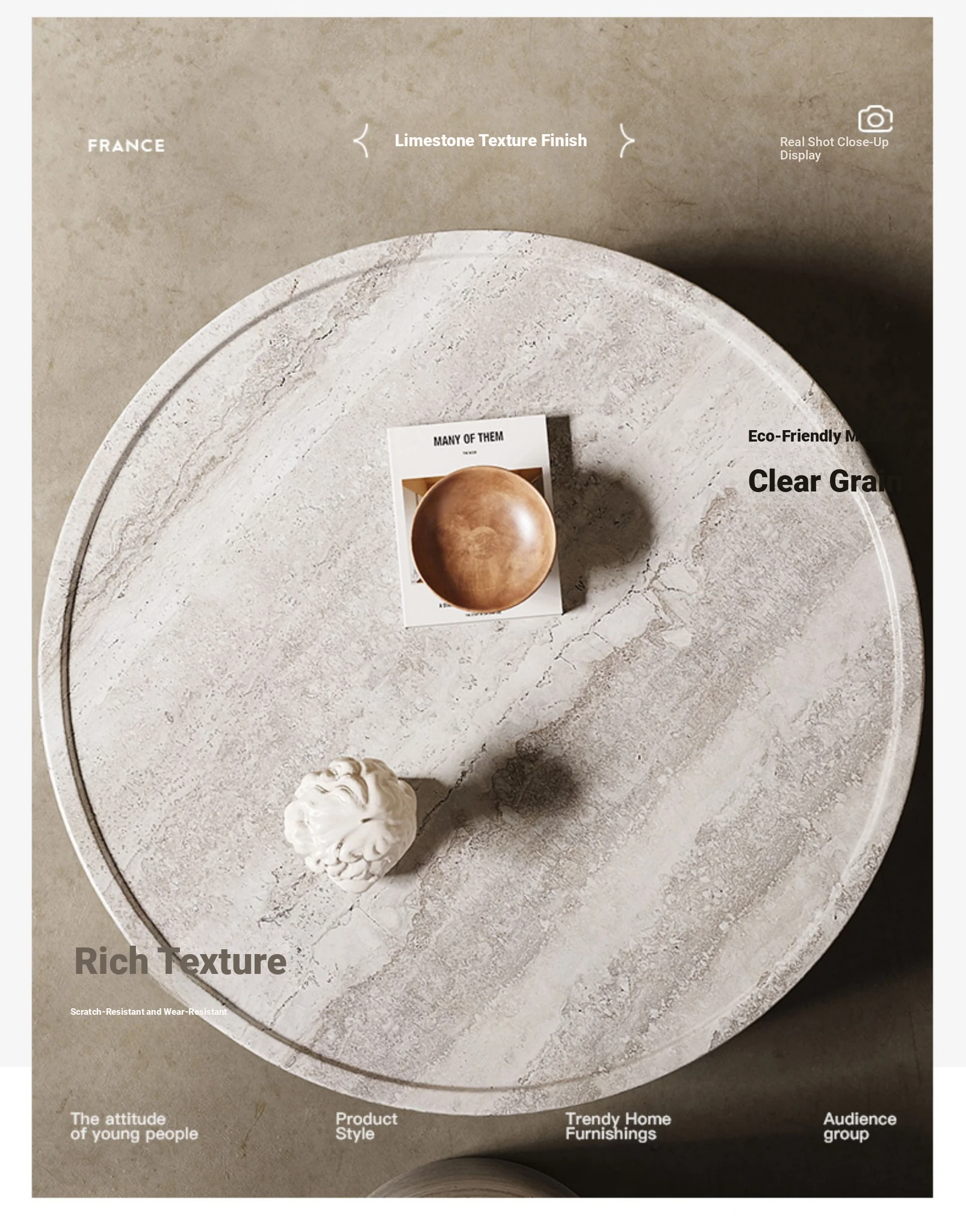 [Small Quantity in Stock] Side Table [Imitation Travertine Veneer + Imported Frp Fiberglass]