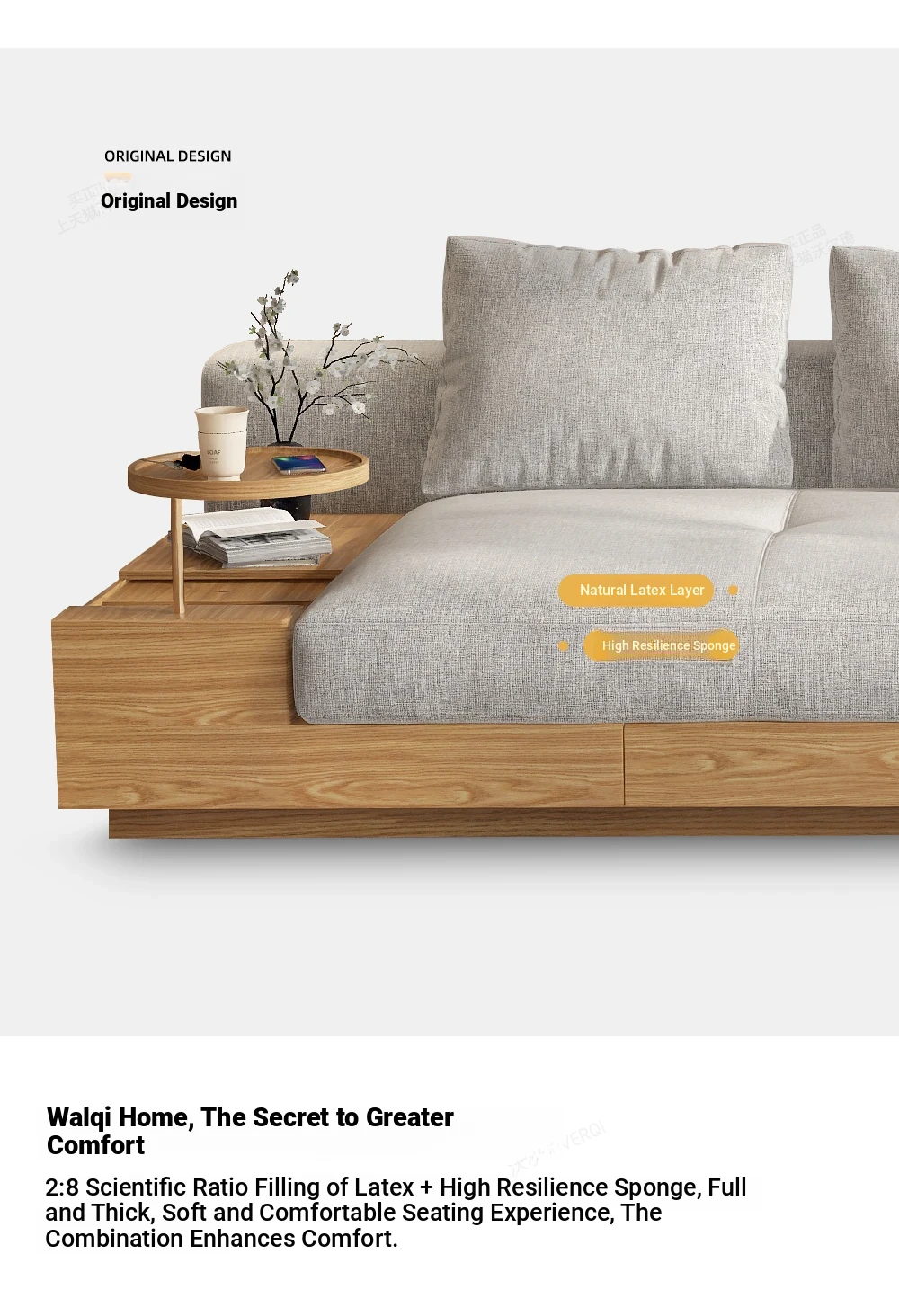Walqi Connolly Minimalist Fabric Sofa – Eco-Friendly Raw Wood Design for Small Living Rooms, Removable & Washable Cotton-Linen Upholstery