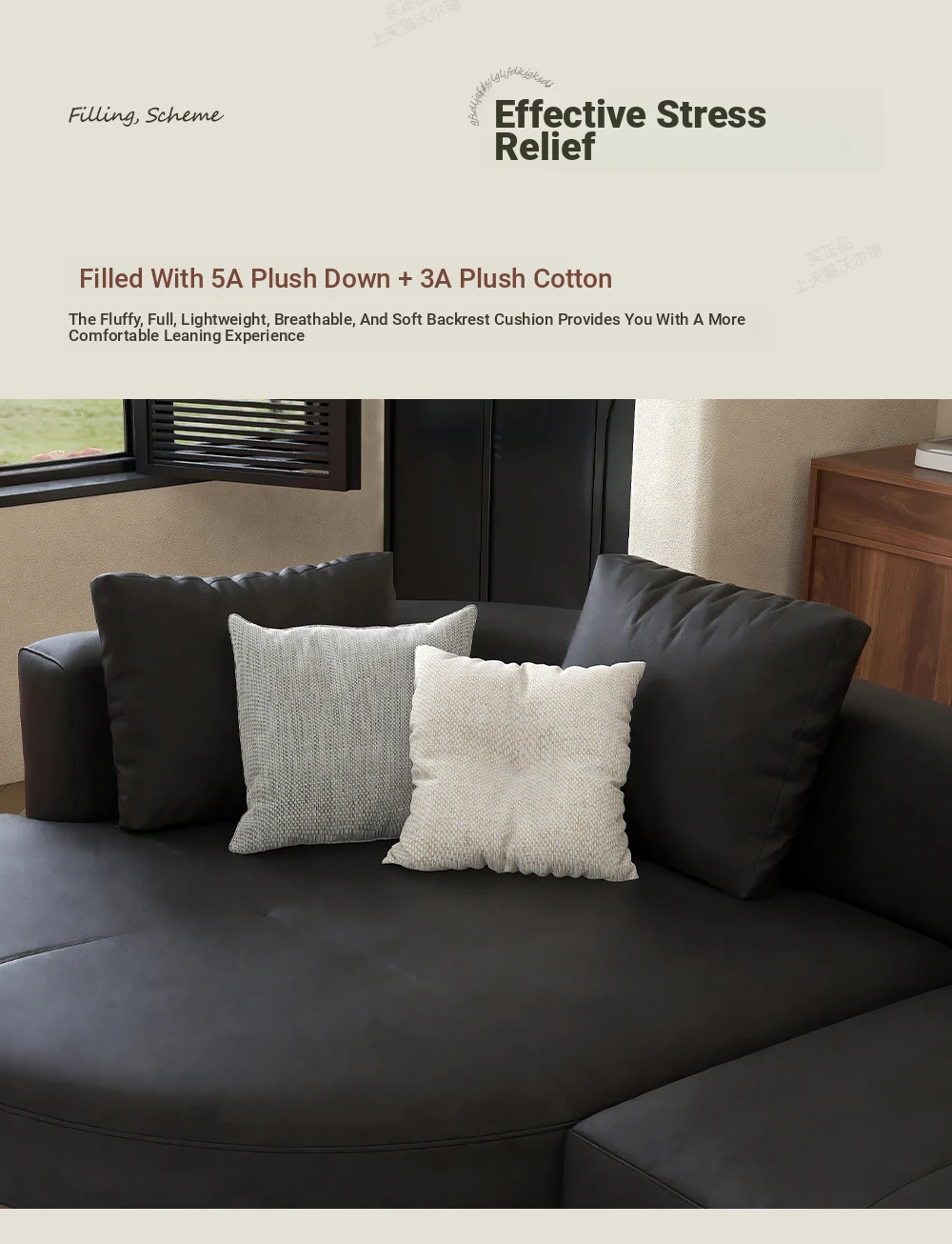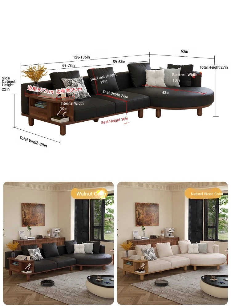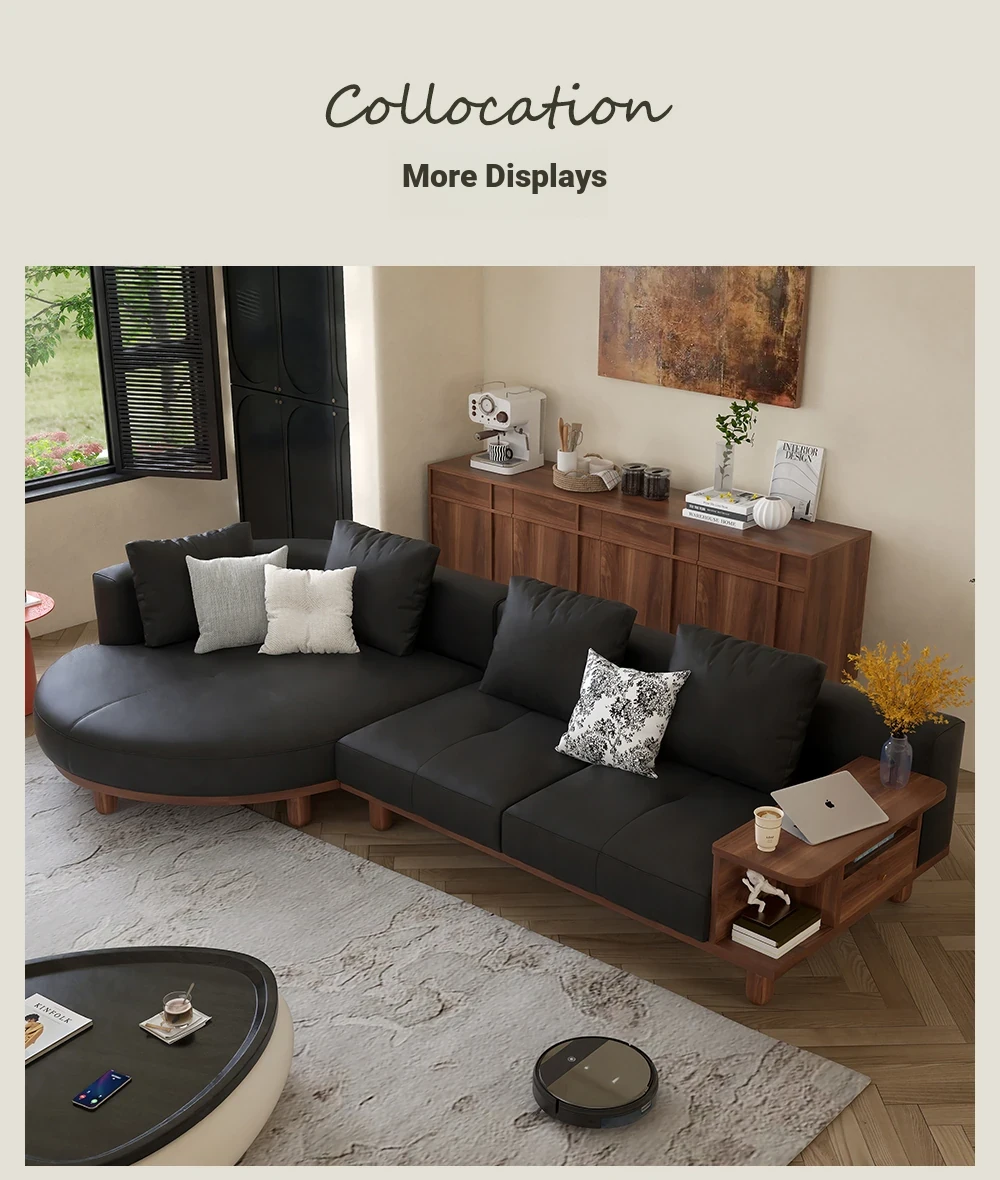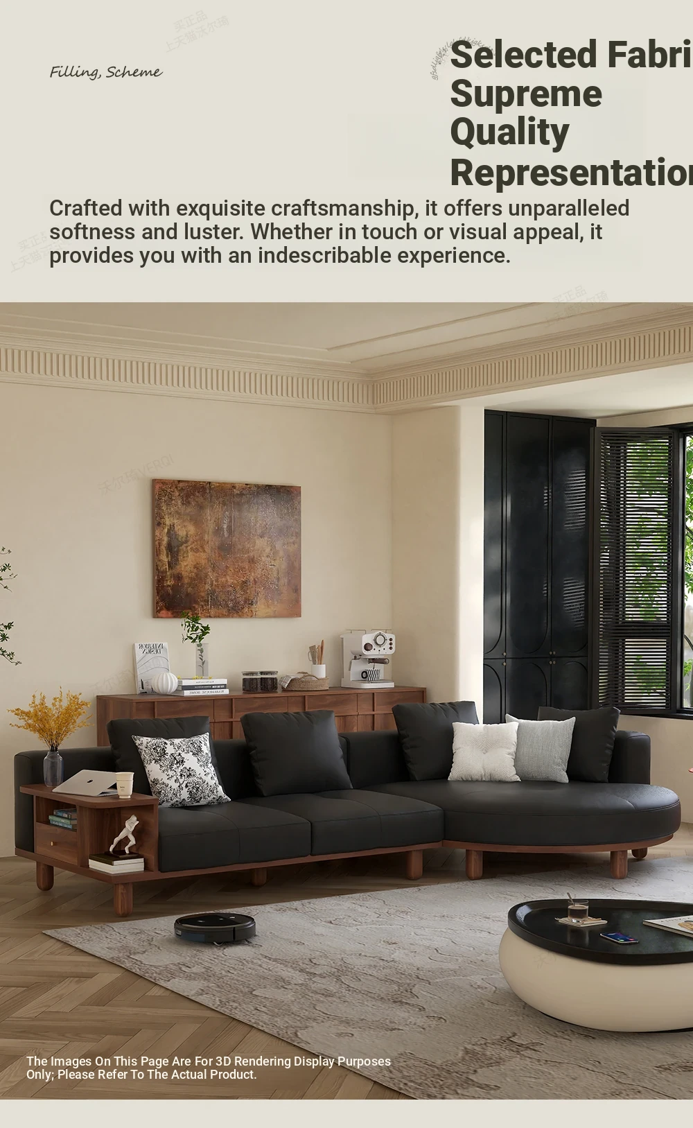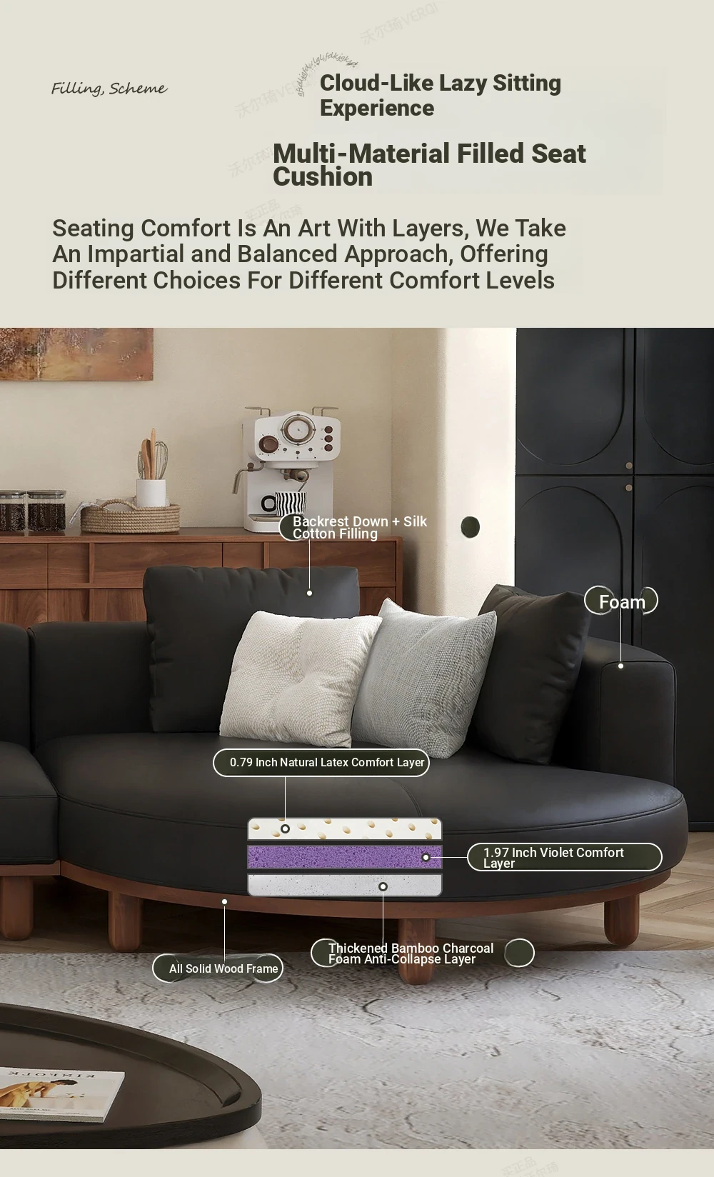 Walqi Connolly Vintage Solid Wood Sofa – Elegant Curved Sectional Chaise Lounge for Villa Living Room, Authentic Leather Retro Style Mid-Century Design