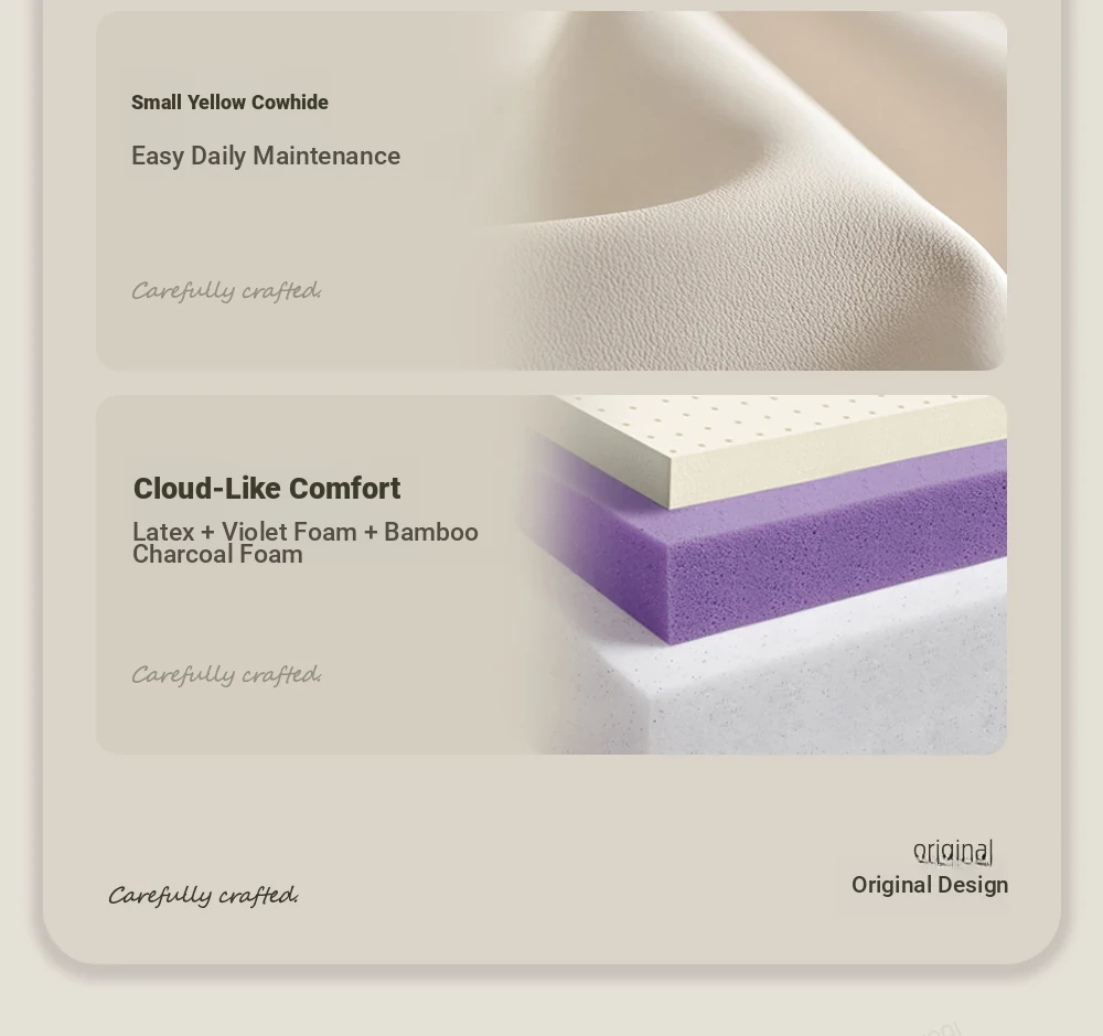 Thickened Small Yellow Cowhide [Latex + Violet + Bamboo Charcoal Sponge] Walnut Color Frame