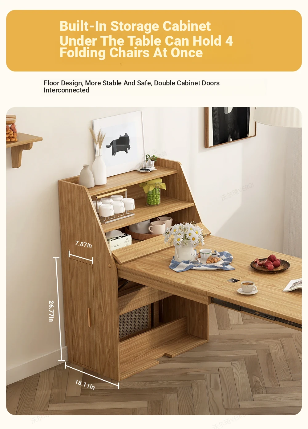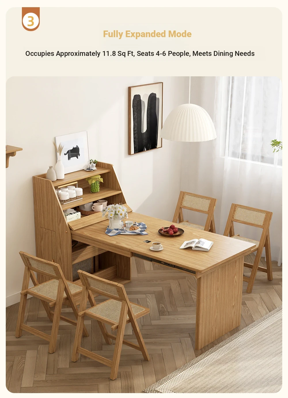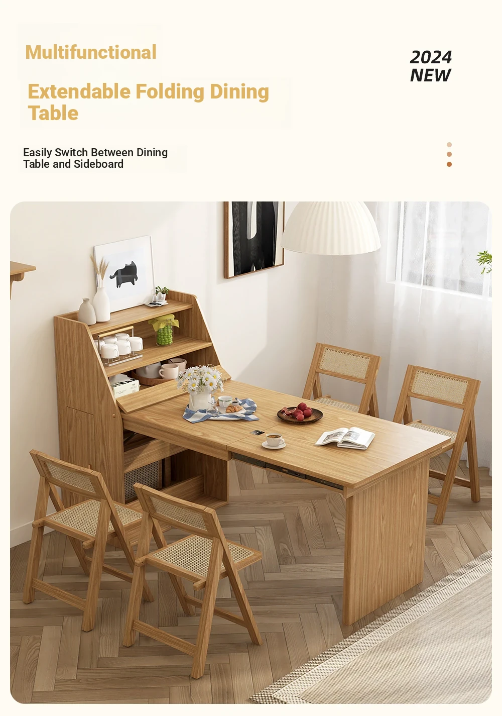 Walqi Folding Dining Table - Nordic Style Solid Wood Rectangular Table with Space-Saving Chairs for Small Apartments - Perfect for Home Dining and Minimalist Living